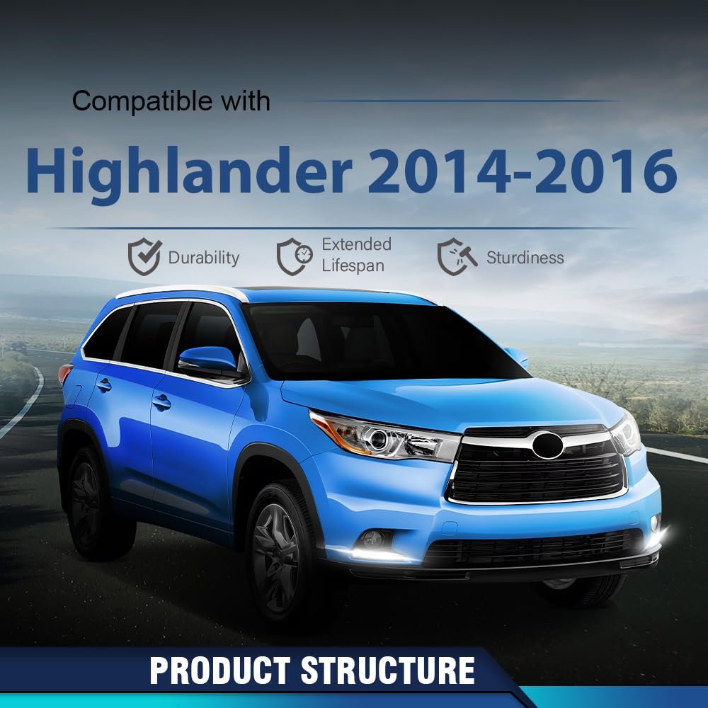 Vehicle Compatibility: Compatible with Toyota Highlander 2014-2016. OE Standard: Meets the Original Equipment (OE) standards, ensuring replacement fit just like the original. Interchange Part Number: TO2562100, TO2563100, 814400E020, 814300E020. Material: The fog lamps are made of durable PP material, which provides better wear resistance, ageing resistance and aesthetics, improving the overall appearance of the car. Function: Our fog light is engineered to minimize glare in fog, rain, or snow while maximizing road illumination. Enhance visibility during night time, heavy rain, snow, or dense fog, also bring a different appearance to vehicle that's great for show use or to replace old and worn fog lights. Installation: No modification required. Professional installation is highly recommended.Other fine products