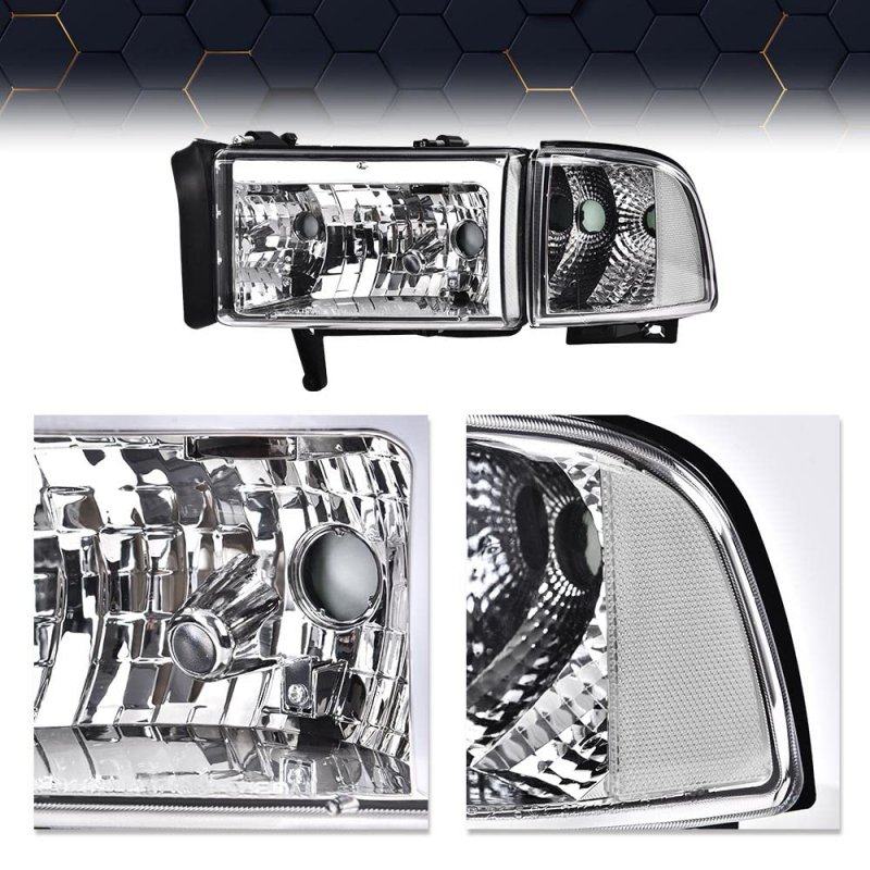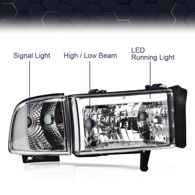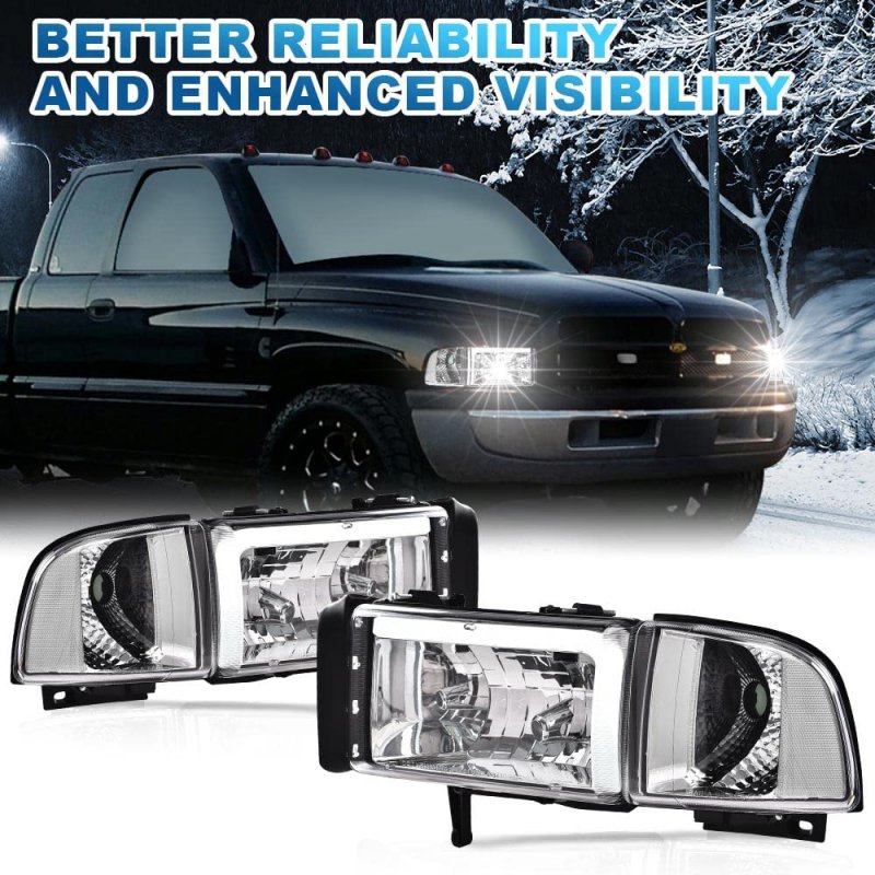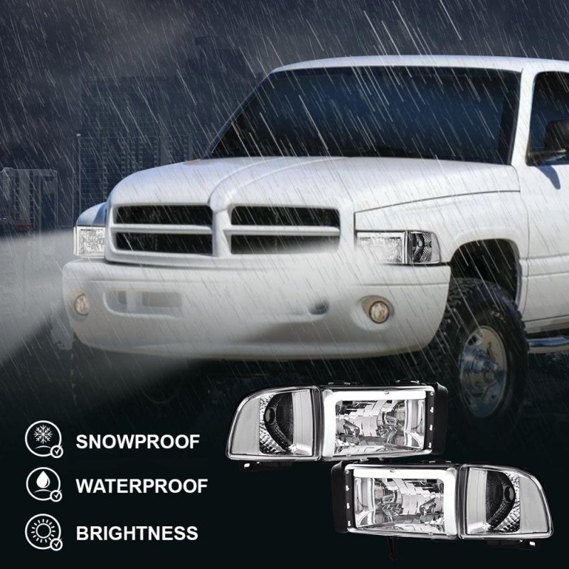 Vehicle Compatibility - Headlamp Assembly Compatible with 1994-2001 Dodge Ram 1500/1994-2002 Dodge Ram 2500 3500(Factory Style; Do Not Fit Sport Model & Ram Van Models!).Reference Part Number:55076749AD,55076748AD,55076749AO,55076748AO. Heavy-Duty Housing MATERIAL - This headlamp has a solid structure, a fully sealed heavy-duty housing made of high-quality OEM grade ABS plastic, with a waterproof grade of up to IP65, ensuring excellent weather resistance and impact resistance. Meticulously crafted to provide bright illumination. New lens and reflector bring more superior lighting and ensure a pleasurable and comfortable driving experience.. Easy to Install - Plug and play, easy installation.Professional installation is highly recommended.. Brighter & Cooler Lighting - The upgraded headlight assembly adds LED DRL, and uses special fine chrome plating to increase brightness and ultra-wide anglemaking the vehicle more special..Other fine products