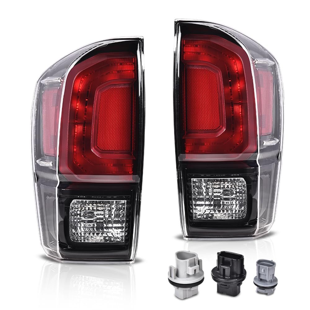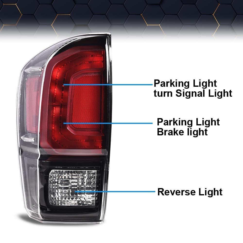 Compatibility - Compatible with Toyota Tacoma All Models 2016 2017 2018 2019 2020 2021 Interchange Part Number:8156004200,TO2800201,8155004200,TO2801201.. DOT/SAE certification:Severe bumpy driving will not hinder the normal illumination of the tail lights. Adopting a fully sealed design and equipped with one-way ventilation openings to prevent moisture from being trapped inside.. Unique style: Excellent design enhances aesthetics.Brings a different appearance to your vehicle thats great for show use or to replace old and worn Tail lights.. Fully sealed design:Adopting a fully sealed design and equipped with one-way ventilation openings to prevent moisture from being trapped inside.Enhance rear visibility and appearance, making your vehicle more easily visible to other drivers and passengers to ensure driving safety..Other fine products