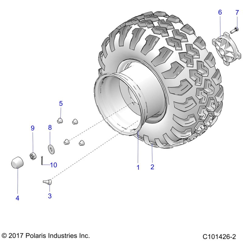 For schematic location 4 only. Front Hub Cover, Part 5416088, and all other Polaris Engineered service parts, deliver unmatched performance and fit for your vehicle. Each one is extensively tested in the field and meticulously crafted to match your machine.. All service parts are engineered specifically for your machine. Which means everything is designed, tested and perfected to maximize the life of your ride.. Getting Polaris Engineered parts is a decision that pays off in the long run, because it ensures there is a long run..Other fine products