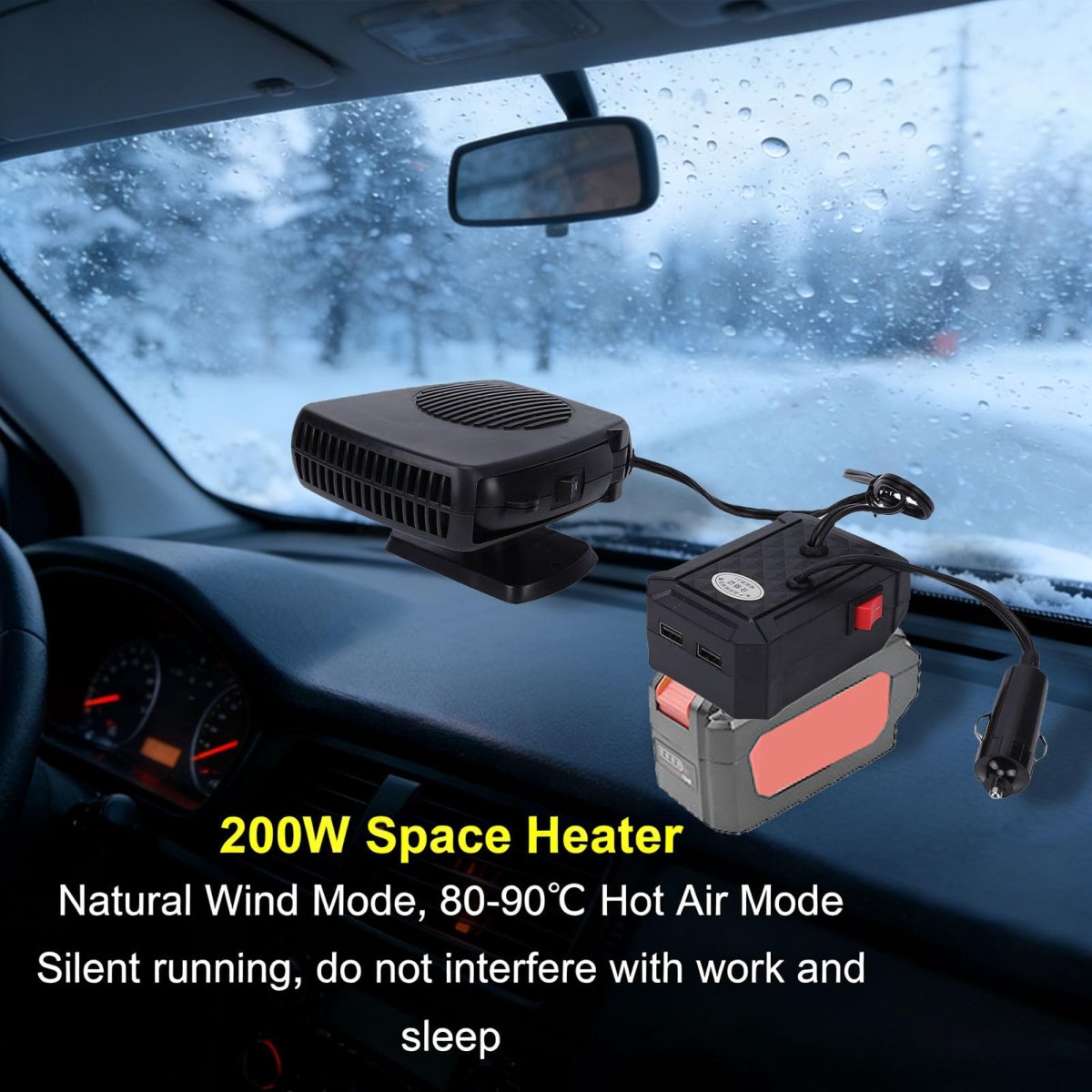 Adjustable Temperature Settings: The Electric Space Heater features 2 gear temperature settings including a natural wind mode and an 80-90 hot air mode. This allows you to customize your heating experience based on your comfort needs in various environments.. Quiet Operation: This Car Space Heater operates with minimal noise, providing a peaceful atmosphere ideal for work or sleep. It also includes an upgraded oxygen anion generator that enhances air quality while heating your space.. Portable Design: Equipped with a convenient handle and a detachable stand, this Car Defroster Heater is lightweight and versatile. It can be easily carried and directed to provide heating in spaces like garages, studios, or small rooms.. Two Power Options: This Thermostat Space Heater can be powered by a DongCheng top key battery (not included) or a car lighter cable. This flexibility ensures that you can use it in a variety of situations, adapting to your needs seamlessly.. USB Charging Capability: The Portable Space Heater includes dual 2A USB output ports, allowing you to charge other devices while utilizing the heater. It is ideal for defogging and defrosting in your car, and it is convenient for use in the office or during camping trips..Other fine products