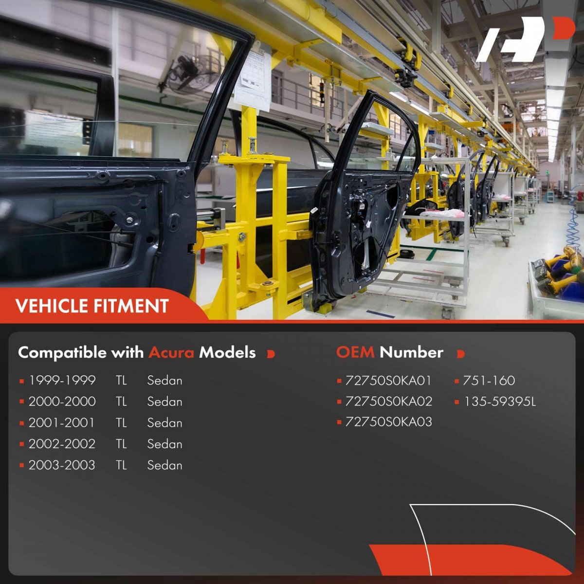 Directly FitOE Replacement Power Window Regulator with 2 Pins Motor, Directly Fit. Vehicle FitmentCompatible with Acura TL 1999-2003 Sedan. LocationRear Left, Driver Side. Reference Number72750S0KA01, 72750S0KA02, 72750S0KA03, 751-160, 135-59395L, 751160, 13559395L.