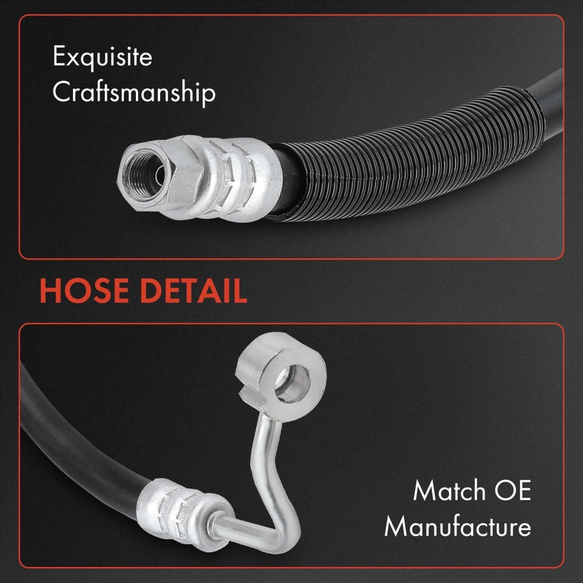 [Vehicle Fitment]: This power steering pressure hose is compatible with Hyundai Santa Fe 2001-2006 V6 2.7L. [Position]: From Pump. [The Performance]: Hose Type: Power Steering Hose Assembly; Working Pressure: Up to 1500 psi; Burst Pressure: Up to 8700 psi; Tensile Strength: Up to 1600 lb; Working Temperature: -40C to 154C. [Reference Number]: The A-Premium power steering pressure line hose assembly's reference number: 5751026101, 5751026100, 3402259. Before placing an order, verify that this power steering tube is compatible with your vehicle using the compatibility system..Other fine products