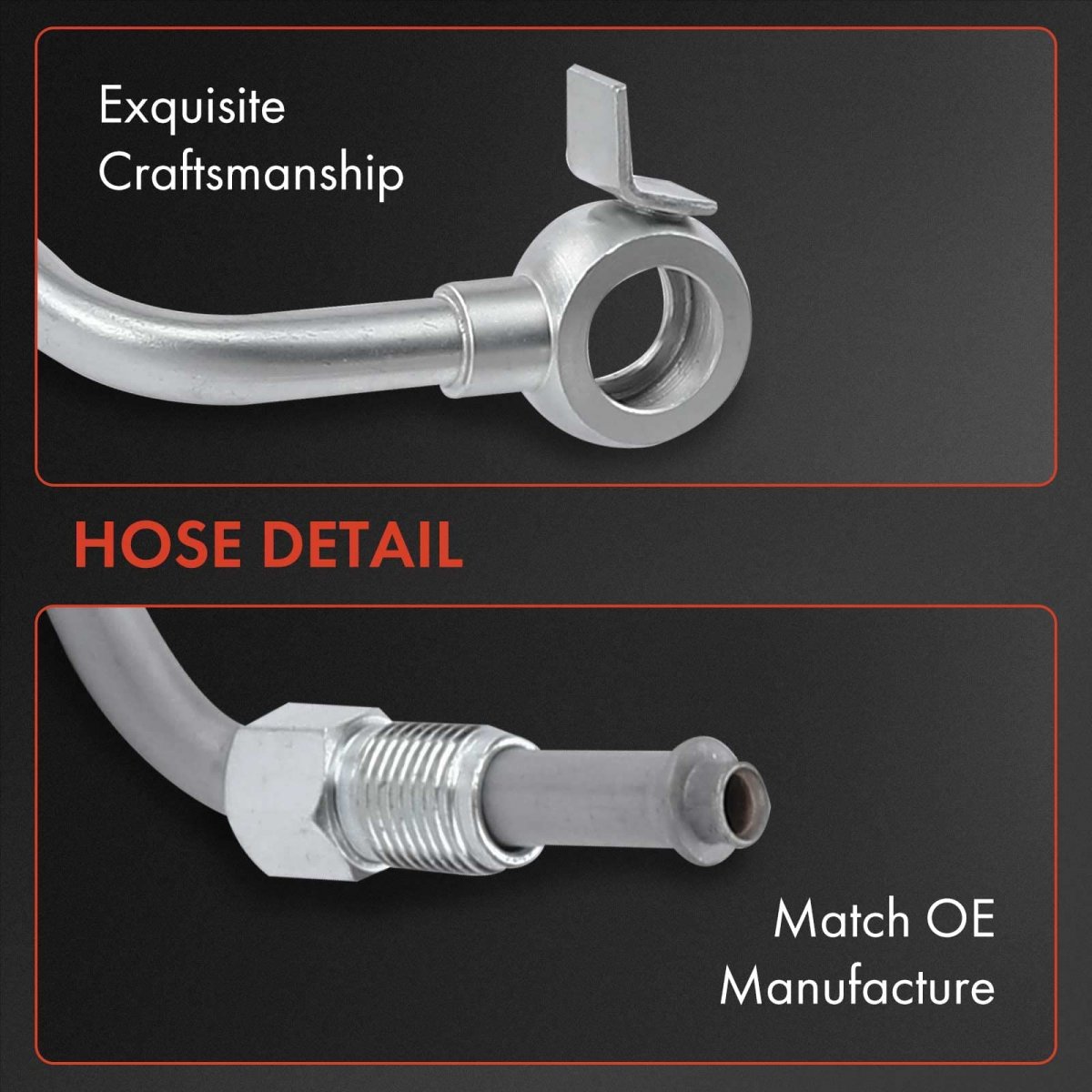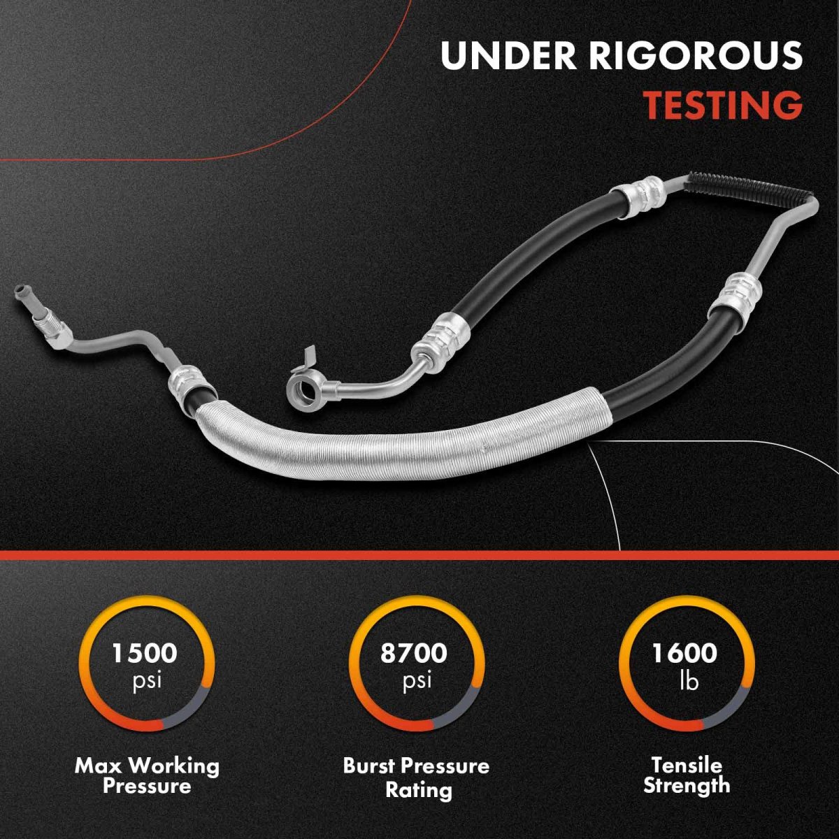 [Vehicle Fitment]: Compatible with Toyota Sienna 2004-2006 V6 3.3L --- It only fits the model with FWD (Front Wheel Drive). . [Reference Number]: 3402353, 4441008040, 4441008041, 4441008042. [Leakage-Free]: A-Premium power steering pressure hose (aka "high pressure hose") is made of sturdy rubber and alloy, which shows good strength, toughness and is not easy to wear and break. The size, length and port of this power steering hose are the same as the original. After replacing the old, worn-out hose with this pressure tube, there's no more need to put up with annoying p/s fluid leak issues.. [Specifications]: Position: Pump to Rack/Gear; Material: High Grade Steel with a Zinc coating & 3 Layers Design Rubber; Max Working Pressure: 1,500 psi; Burst Pressure Rating: 8,700 psi; Tensile Strength: 1,600 lb.
