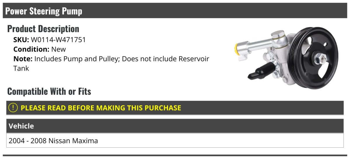 - Power Steering Pump With Pulley For 2004-2008 Nissan Maxima