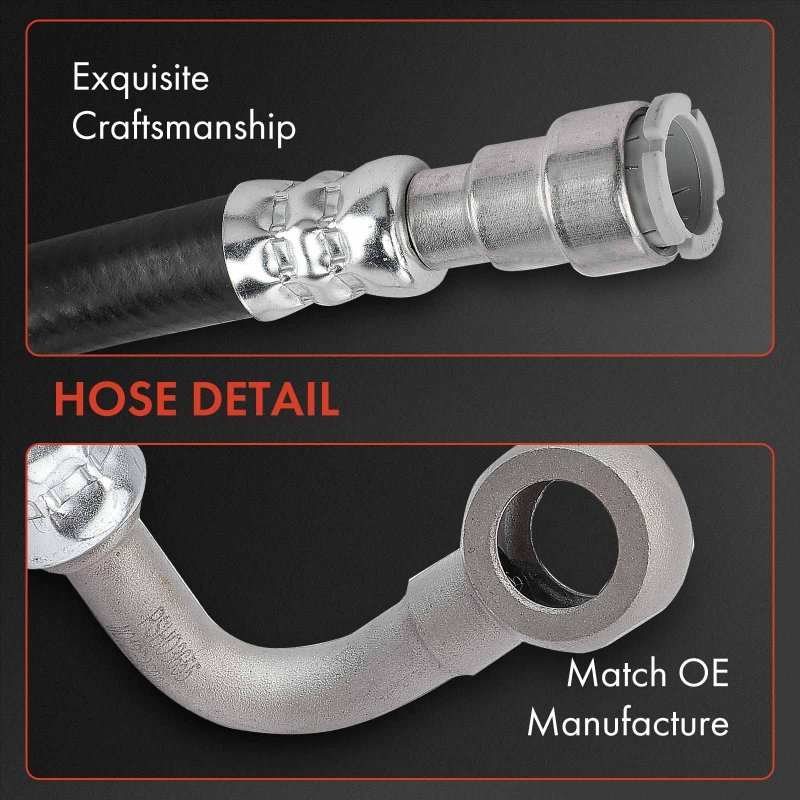 [Vehicle Fitment]: Compatible with BMW E46 Series 320i 2001-2005 L6 2.2L 323Ci 2000 L6 2.5L 323i 1999-2000 L6 2.5L 325Ci/325i 2001-2006 L6 2.5L 328Ci 2000 L6 2.8L 328i 1999-2000 L6 2.8L 330Ci/330i 2001-2006 L6 3.0L . [Reference Number]: 3403655, 32411096494, 32416796367. [Leakage-Free]: A-Premium power steering return line is made of sturdy rubber and alloy, which shows good strength, toughness and is not easy to wear and break. The size, length and port of this power steering hose are the same as the original. After replacing the old, worn-out hose with this return tube, there's no more need to put up with annoying p/s fluid leak issues.. [Specifications]: Position: Gear To Cooler; Material: 3 Layers Design Rubber; Temperature Resistance: From 40 to 150 Degree Fahrenheit; Abrasion Resistant: Yes; Chemicals Resistant: Yes.Other fine products