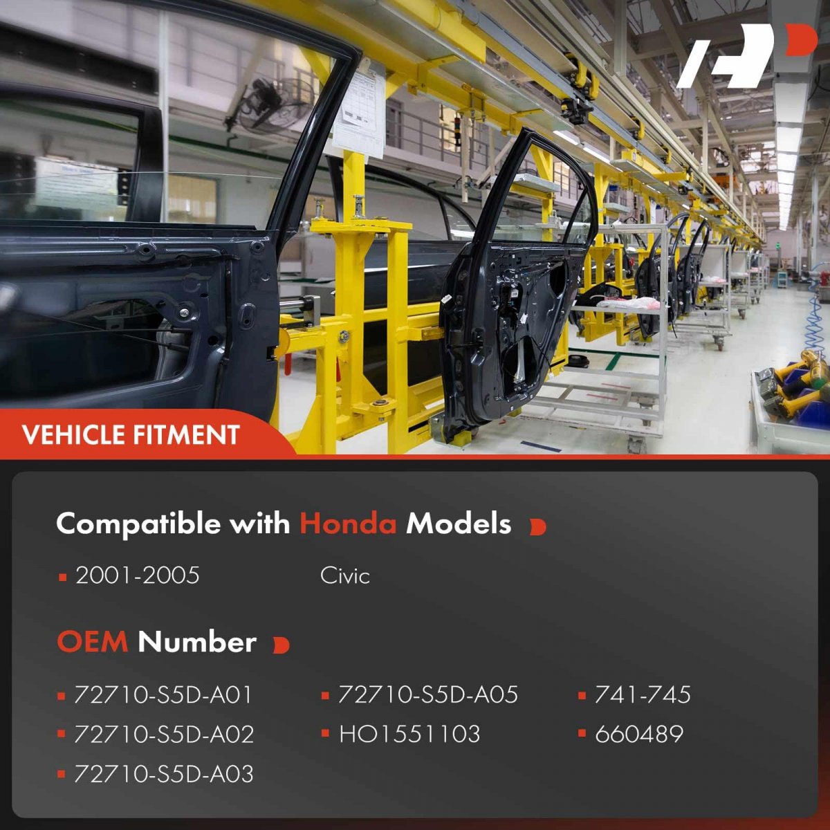 Directly FitOE Replacement Power Window Regulator with Motor, Directly Fit. Vehicle FitmentCompatible with Honda Civic 2001-2005 Sedan 4-Pins---Only for the vehicles Built in U.S.A. PositionRear Right (Rear Passenger Side). Reference Number80720-2Y000, 80720-2Y900, 80720-2Y00A, 741-722, 125-58767R.Other fine products