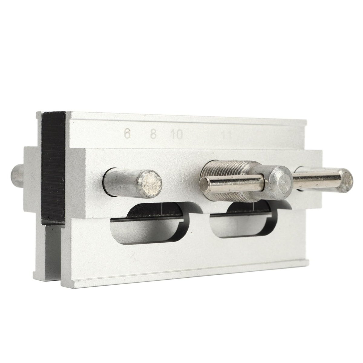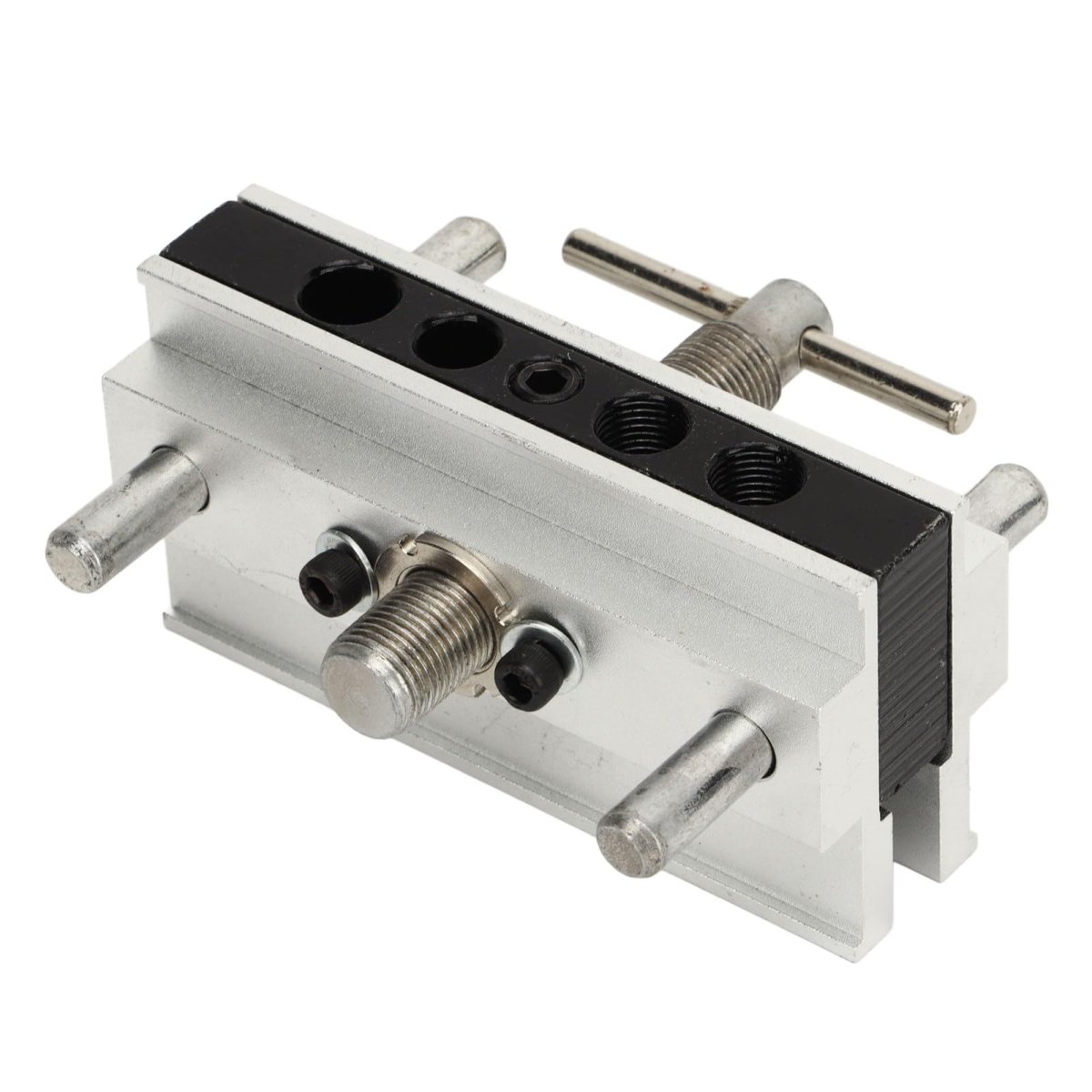 Versatile Drill Size Accommodation: Designed with 1/4in, 3/8in, 5/16in interchangeable drill sleeves, and includes 7/16in and 1/2in specific drilling holes to cater various drilling .. Precision Machined Drilling: Ensures unparalleled accuracy and with every use of this dowel locator, boosting your confidence in reliable and consistent results.. Broad Application Suitability: Serves as a versatile tool for a wide range of woodworking tasks including DIY drilling projects, furniture installation, home tasks, and more. A must have tool and DIY enthusiasts alike.. Constructive for Craftsmanship: Main body is skillfully constructed from hard wearing and resnt alloy steel, providing a sturdier structure that offers outstanding durability and longevity.. Portable and Compact: Designed for convenience and easy carry with its lightweight and compact features, for both indoor and outdoor woodworking projects..Other fine products