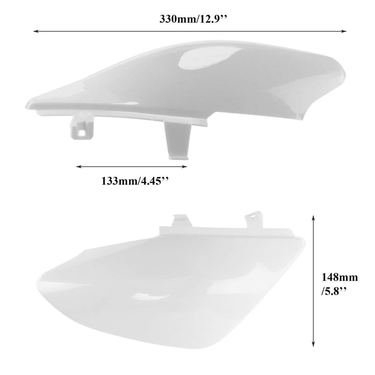 Complete 7pcs plastic fairing fender kit fits XF70/CRF70 and their Chinese dirt pit bike copies or most pit bikes on the market. Also fit 140/150/160/200/ 250CC which made by Thumpstar Pitpro Atomic and etc. Material: Made with Plastic. Plastic Fender Fairing Body Work Kit Set, Plastic Body Fender Kit 7 piece for CRF50 Chinese Mini Dirt Bikes.. Including: 1pcs x number plate,1pcs x Front Fender + 2 Pcs Radiator Shrouds + 2 Pcs Side Panels, 1pcs x Rear Fende + 1pair x Windshield, 1pair x tank shrouds, 6pcs x Mounting Bolts(Length 20mm), 2pcs x Mounting Bolts(Length 16mm), 6pcs x Metal Screw Gaskets, 8pcs x Rubber Screw Gaskets, 9pcs x Mounting Screws, 2pcs x Tools.. All plastic fenders come with surface protection films on its both sides to assure you receive flawless products..Other fine products