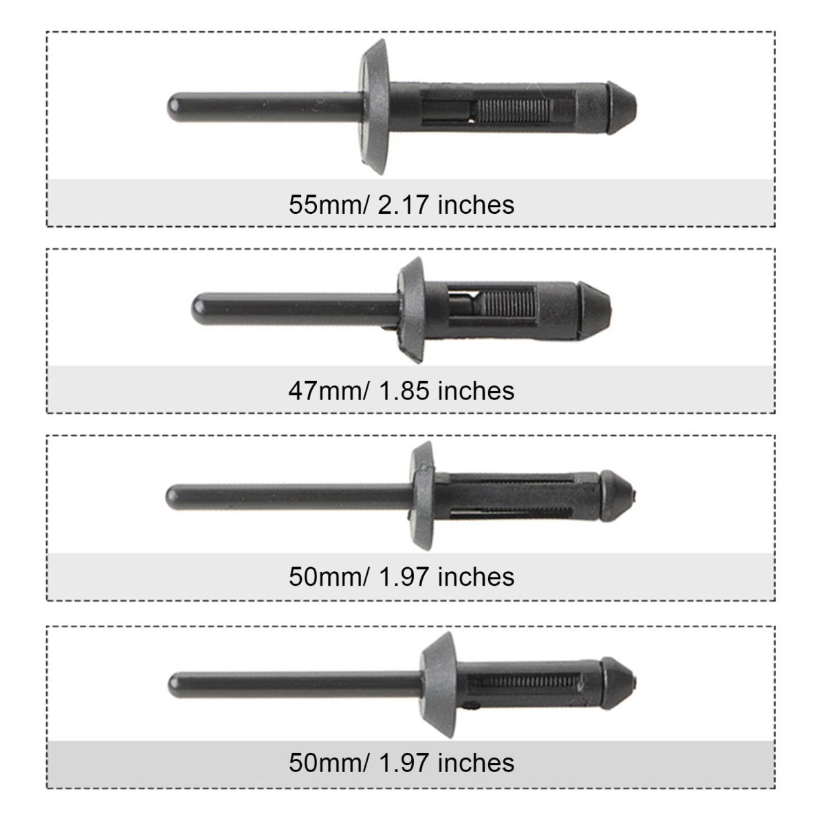 [Premium Materials] Made of metals and plastics to cracking and aging, this tool is built to last through long and frequent use.. [Universal Nosepiece] The manual rivet tool includes a universal nosepiece suitable for different sizes of plastic rivets, ensuring convenience in use.. [Accessibility] The professional tool set can access areas that lever-style tools cannot reach, making it great for various work scenes.. [Versatility] Suitable for various work scenes requiring rivet installation, such as car door panels, providing full support for riveting work.. [Ergonomic Design] The handle of the rivet tool is ergonomically designed for easy one-handed use without re-clamping..