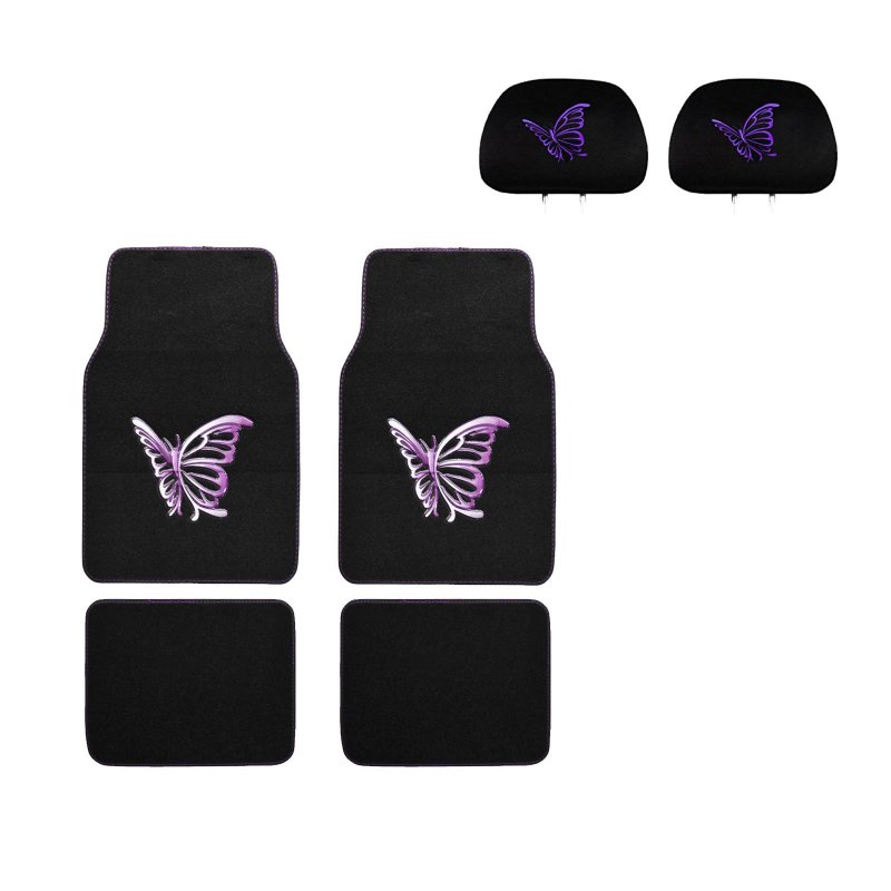 - Purple Butterfly 4 Pc Carpet Floor Mats And Headrest Cover