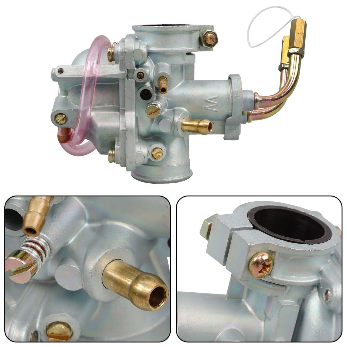 Fitment: Replacement for PW50 2016-2020, Replacement for PW50 Y-Zinger 1981-2015. Size: Inlet diameter: 21mm Inner; Outlet diameter: 23mm Inner, 29mm Outer. Package Includes: 1 x Carburetor, 1 x Air Filter, 1 x Choke Cable, 1 x Throttle Cable, 1 x Fuel Hose Line(2 Feets), 1 x Fuel Filter, 2 x Clamps(as picture show). Features: With reasonable structure, easy installation, convenient operation and maintenance, reliable performance.