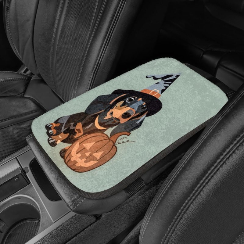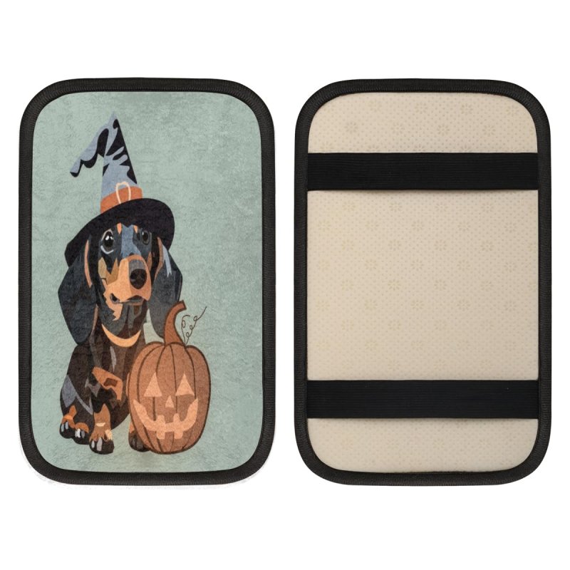 • Qsirbc Car Center Console Covers Dachshund Halloween Witch Hat Plush Soft Memory Foam Arm Rest Cover 12 8 X Auto Armrest