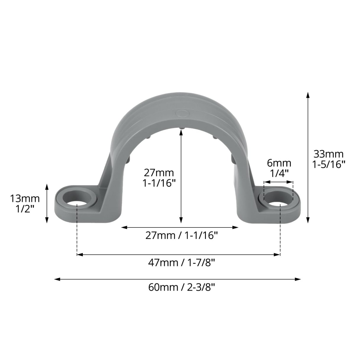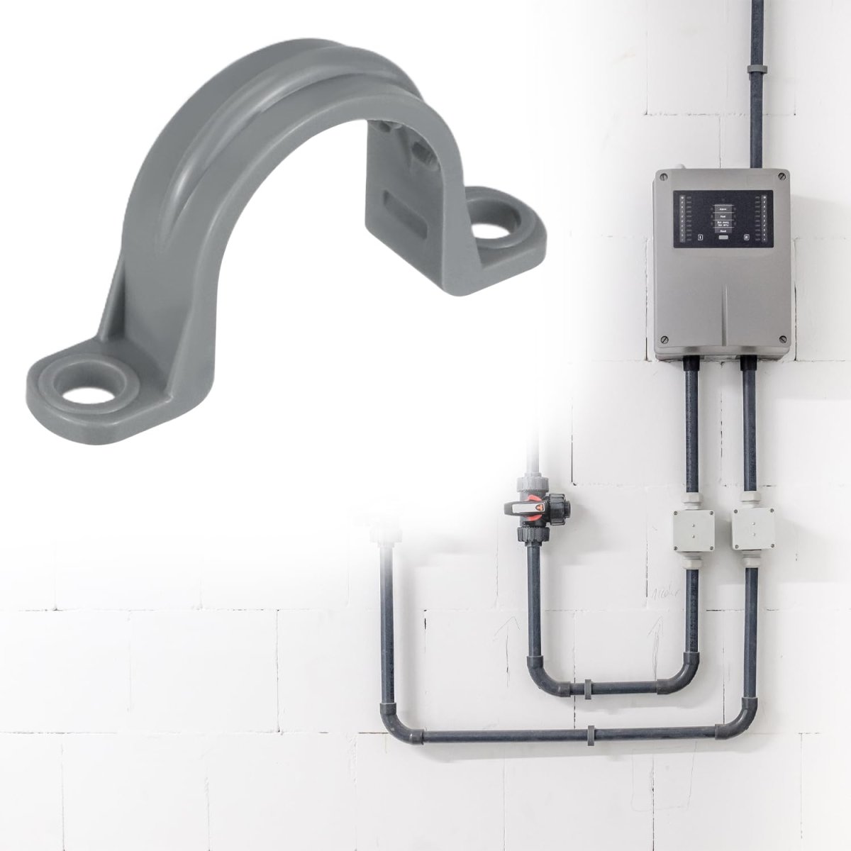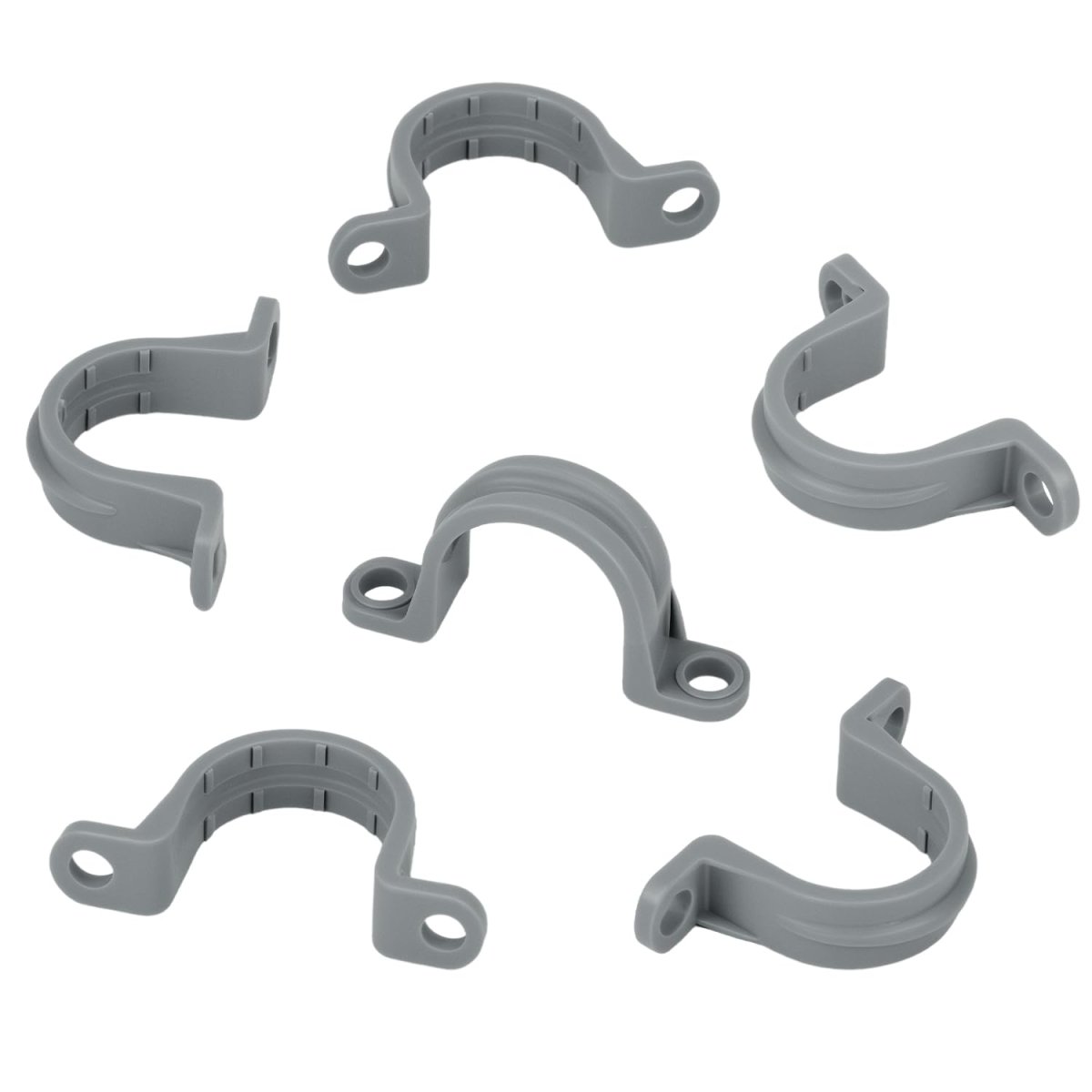 Material: Robust PVC, anti-corrosion.Quantity: 20 pieces. Fit: 3/4 Inch (fits for 3/4 Inch inside diameter pipe).. Hole Diameter: 6mm. Band Width: 12mm.Thickness: 4mm.. Features: U shape clamps, strong and secure hold.. Applications: Provide easy and firm installation for various surfaces and support structures, securing PVC pipes, conduit, cables, and more..Other fine products