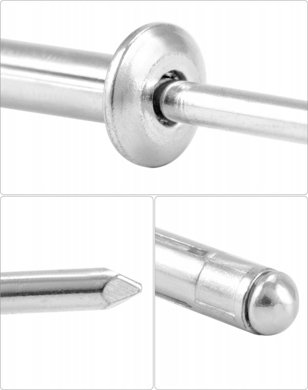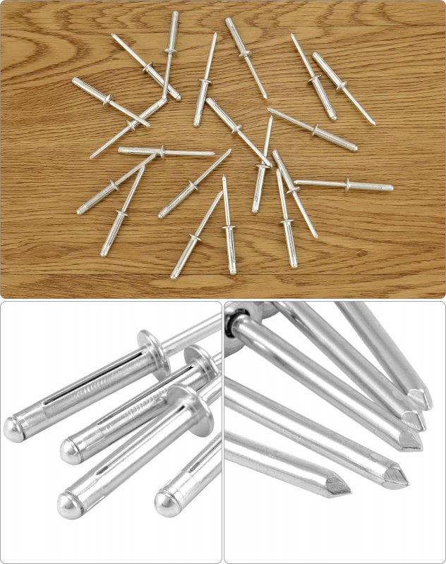 Rivets: The rivets are made of solid aluminum, corrosion and acid resistance, high strength, used for a long time.. Size: 3/16" (4.8mm) Hole Size, Length: 5/8" (16mm), Rivet Head Approx. 7/16", Grip Range 1/25" - 1/6".. Powerful: The unique three-fold rivet will expand in three different directions after installation, forming three anchor points under force. By increasing the contact area, it has better fixation and retention.. Easy to Install: These rivets can be used with any available blind rivet installation tool, without backup washers.. Wide Application: It is practical and widely used in commercial, automotive, container, industrial aviation, piping systems, furniture appliances, marine and other occasions..