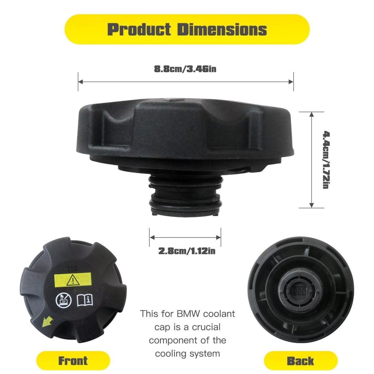 Fitment: GRABOTE for BMW 2004-2007, 2017-2019 530i. Replace Part Numbers: 17137516004, 17-11-7-639-021, 17-13-7-516-004, 17117639021. Replacement - To replace your radiator expansion tank cap if its broken or cracked. It fits directly into your bumper without further adjustment. Easy Installation - Remove the old washer reservoir cap, then install the new cap on the washer reservoir. Make sure that it will be fitted and sealed on the washer reservoir to avoid any leaks. Package Includes: 1 Pcs Coolant Reservoir Tank Cap.Other fine products