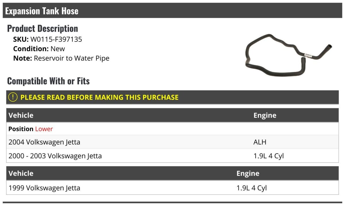 - Radiator Coolant Overflow Expansion Tank Hose Reservoir To Water Line For 1999-2004 Volkswagen Jetta