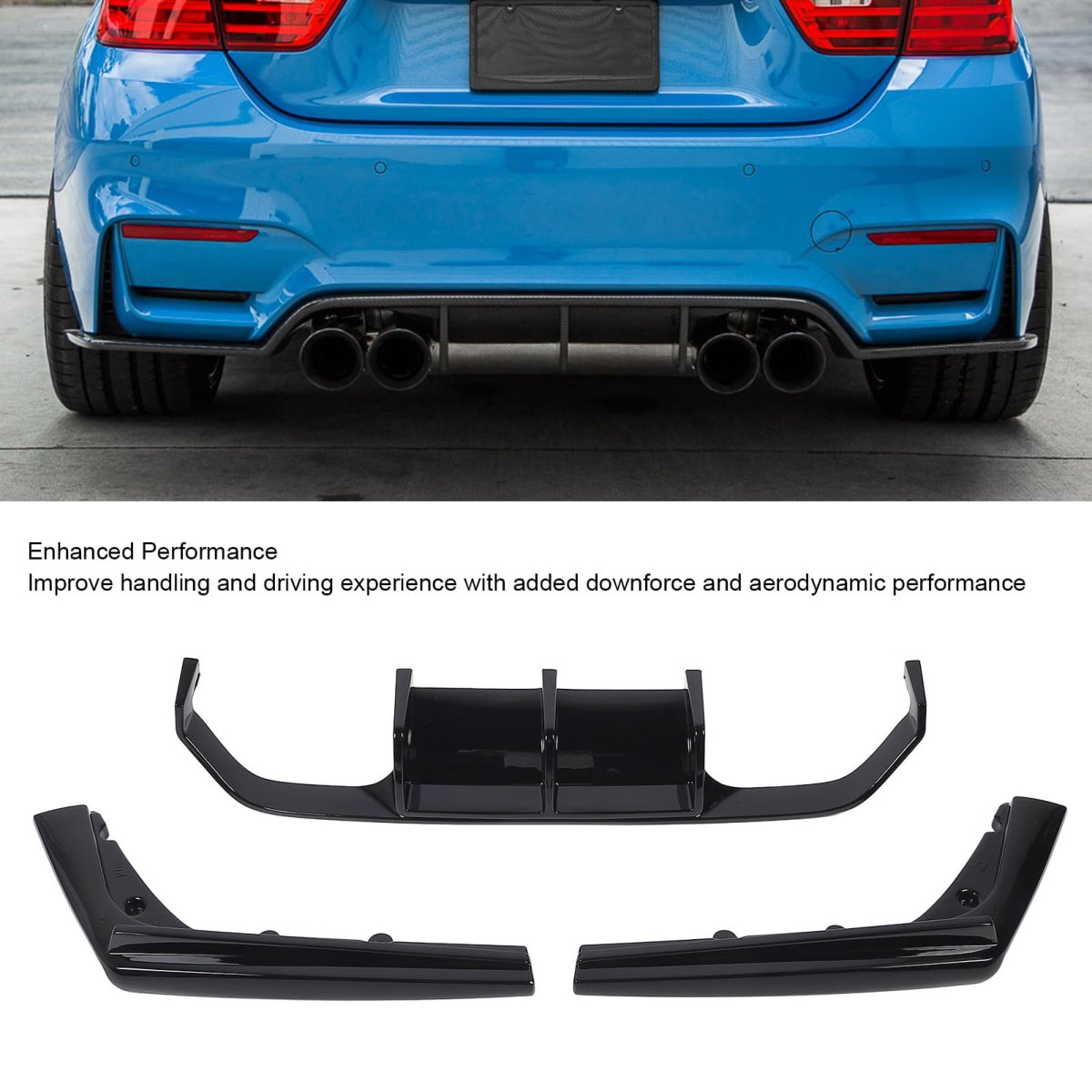 [Easy Installation & Long Lasting] Designed for effortless installation this lip spoiler diffuser comes with all necessary screws and adhesive tape. the coating ensures the finish remains vibrant and fade for years. enjoy a unique and charming appearance that elevates your driving experience with minimal effort.. [Stylish Glossy Black Finish] Enhance your vehicle's sporty and aggressive appearance with this elegant glossy black rear bumper lip diffuser. the finish adds a touch of sophistication while giving your car a refreshing and modern look. its polished design seamlessly integrates with your vehicle's original bumper for a flawless aesthetic.. [Protective Bumper Guard] your car's original bumper from minor scratches and damage caused by narrow roads or bouncing rocks. this rear bumper diffuser acts as a protective layer ensuring long term preservation of your vehicle's exterior. its robust construction offers reliable defense against everyday wear and tear.. [Improved Aerodynamic Performance] This rear diffuser lip protector is engineered to provide increased downforce and better aerodynamic efficiency. by improving airflow it enhances overall handling stability and safety during high speed driving. the optimized design also helps reduce fuel consumption making your rides more efficient..Other fine products