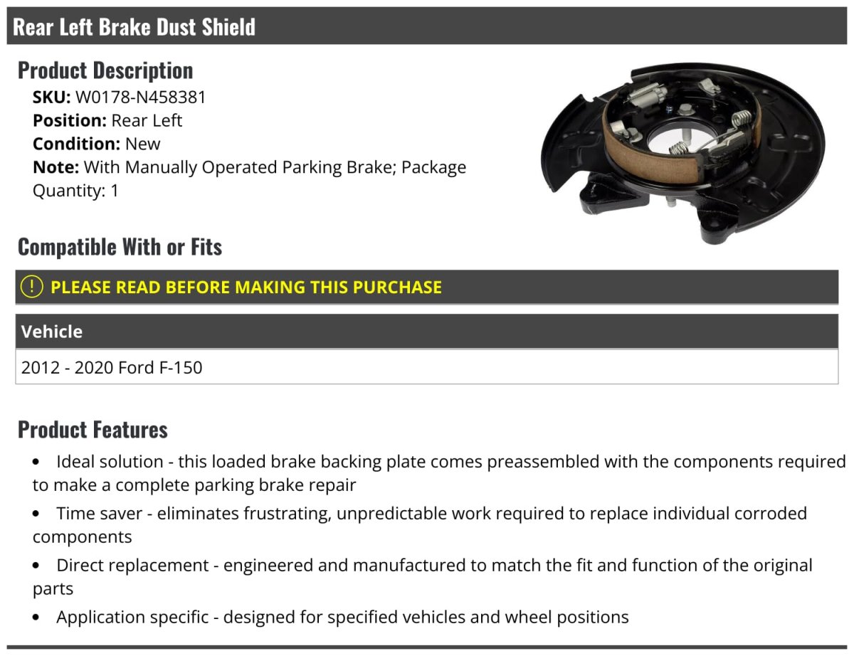 - Rear Left Driver Side Brake Dust Shield Backing Plate For 2012-2020 Ford F-150 With Manually Operated Parking