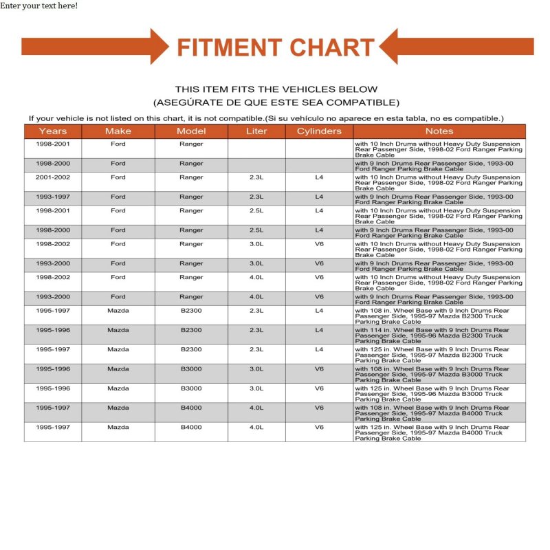 - Rear Parking Brake Cable Passenger Side For Ranger Mazda B2300 B2500 B3000 B4000