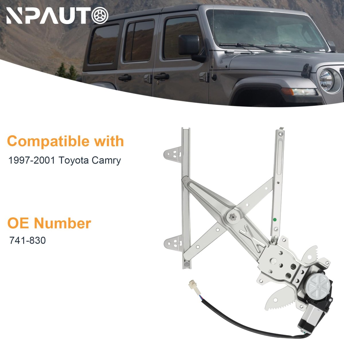 Rear Passenger Side Power window regulator with motor assembly fit for 1997 1998 1999 2000 2001 Toyota Camry. OE Number: 741-830, 741830, 69803AA010, 6982007010, 85710AA030. Location: Rear Right Passenger Side (come with motor). Easy Installation: this product is a direct replacement for your vehicle. Built to OE standards, it will slid smooth and quick without noise..Other fine products