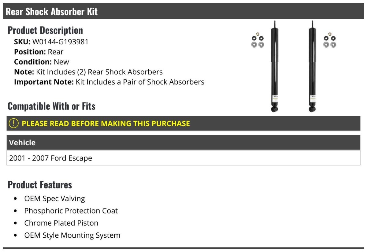 - Rear Shock Absorber Kit 2 Piece For 2001-2007 Ford Escape