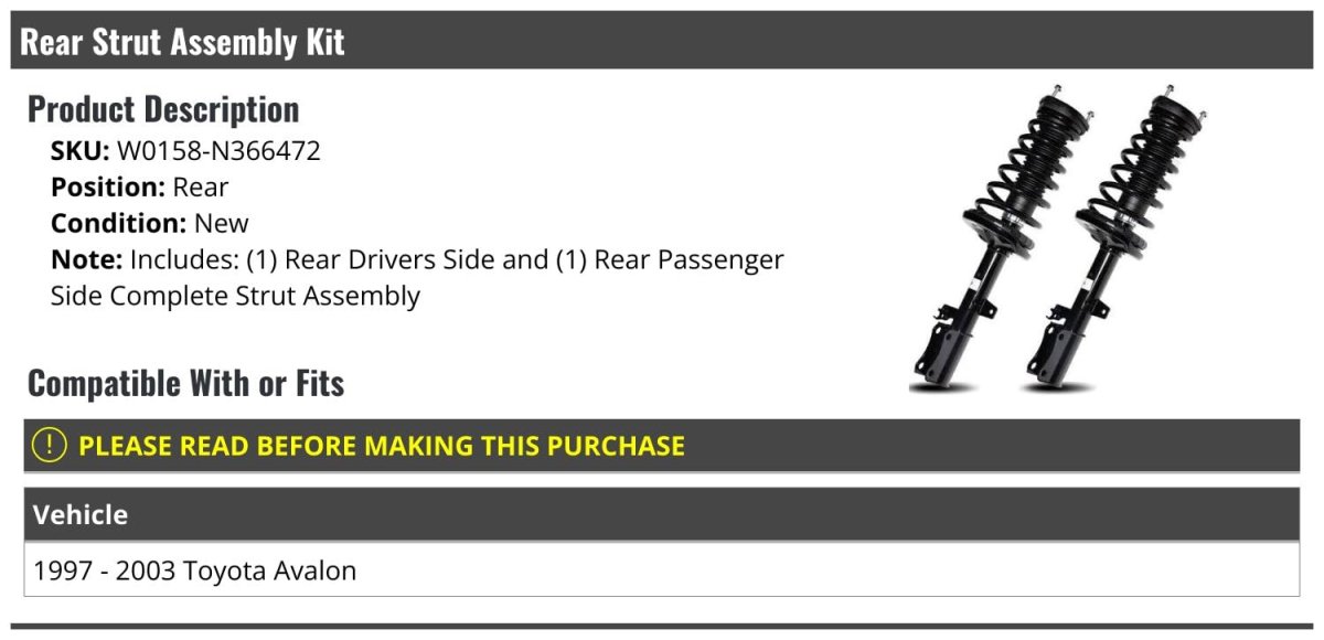 - Rear Strut And Coil Spring Assembly Kit 2 Piece For 1997-2003 Toyota Avalon