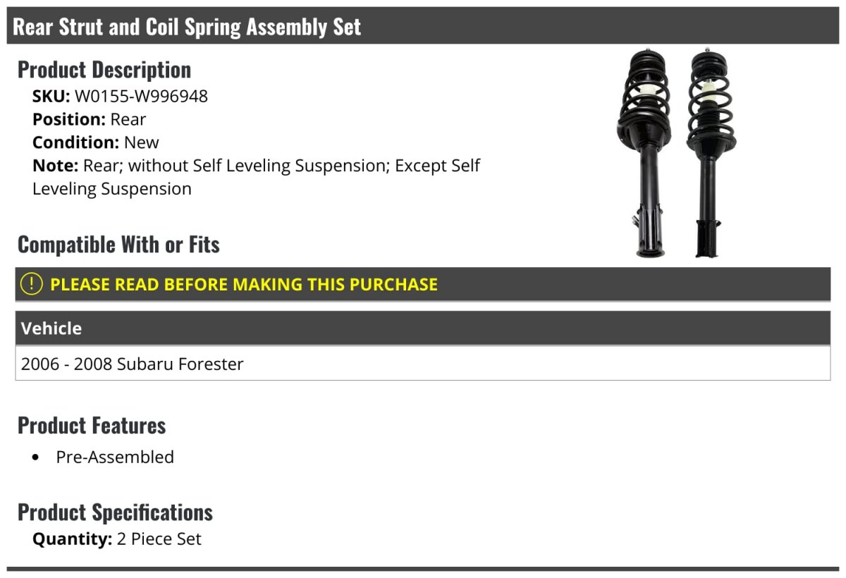 - Rear Strut And Coil Spring Assembly Set Of 2 Compatible With 2006-2008 Subaru Forester Without Self Leveling Suspension