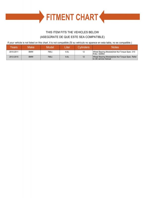 Fitment Notes: Wheel Bearing ModuleAxle Nut Torque Spec: Refer to OE service manualAxle Nut Torque Spec: 310 ft-lbs / 420NmPosition Location: Rear. Designed with the latest software and manufactured with modern tooling. Direct fit replacement. Installs the same as factory unit. Same dimensions as OE part.Other fine products