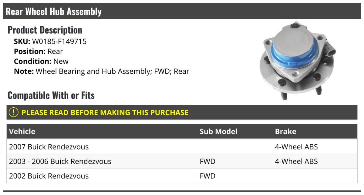- Rear Wheel Bearing Hub Assembly Compatible With 2002-2007 Buick Rendezvous Fwd 4-wheel Abs