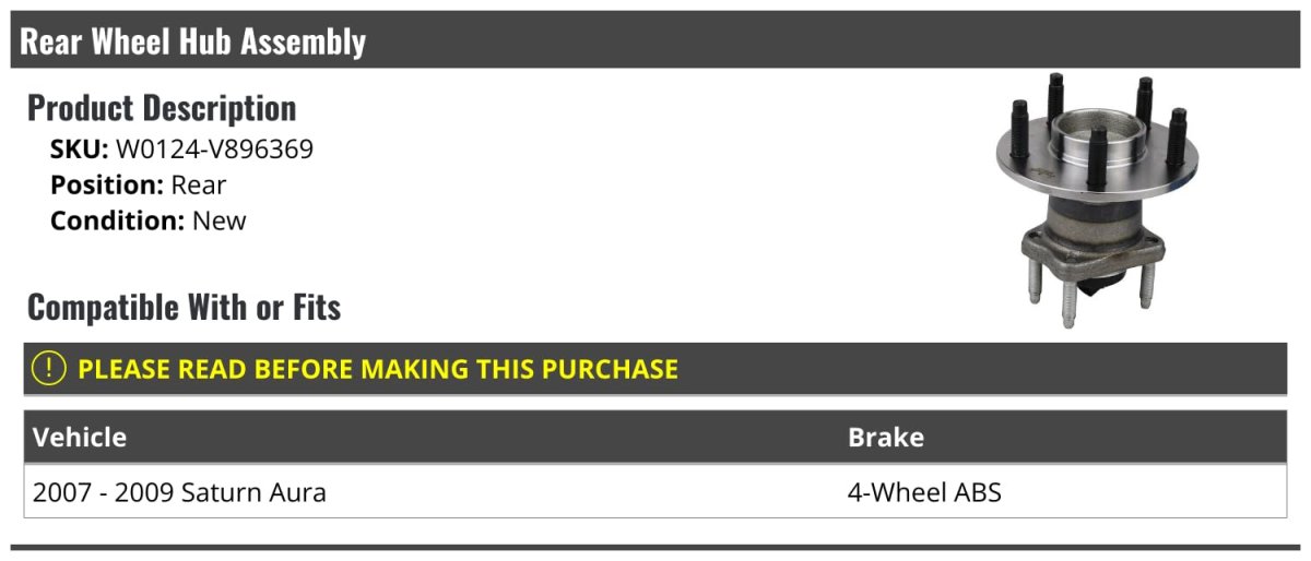 - Rear Wheel Bearing Hub Assembly For 2007-2009 Saturn Aura With 4-wheel Abs