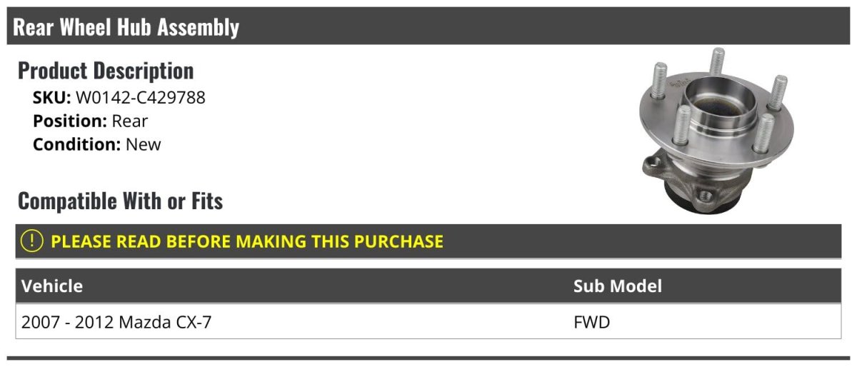 - Rear Wheel Bearing Hub Assembly For 2007-2012 Mazda Cx-7 Fwd
