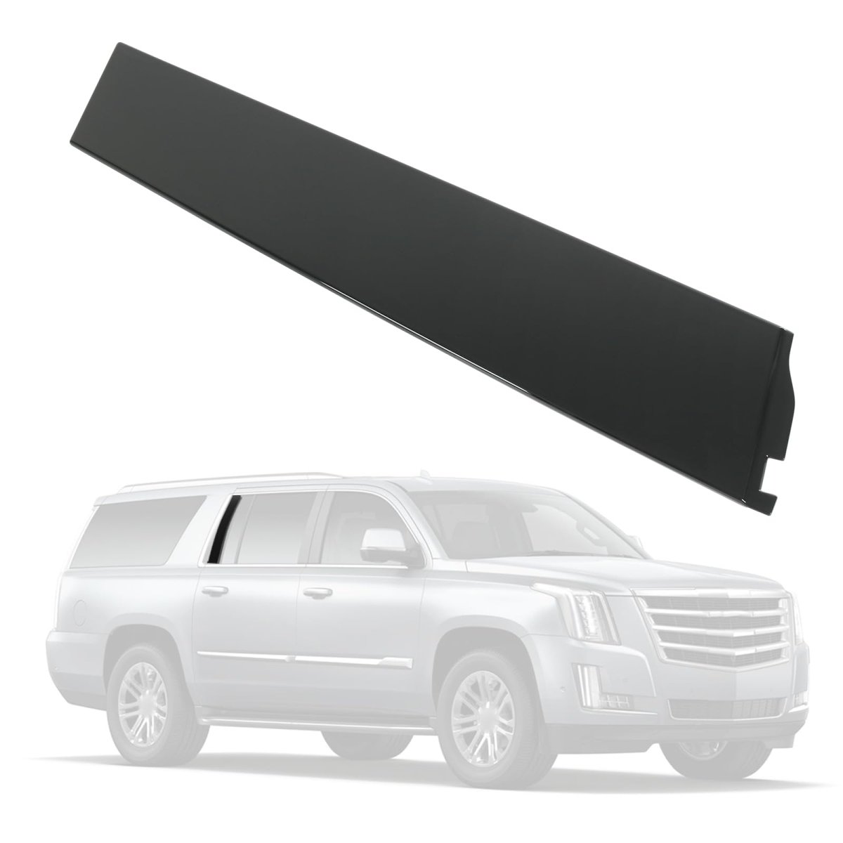 C pillar door window trim Fit for:replacement for Cadillac Escalade 2015-2018(uncompatible with Cadillac Escalade ESV);replacement for Chevrolet Tahoe 2015-2018;replacement for GMC Yukon 2015-2018(uncompatible with GMC Yukon XL).NOTE:dose not fit ESV/XL,only fit Standard Type.. Part number84263149 926-246.Fit Position: Passenger Side Rearward Door.Color:Gloss Black.. Reduce noise and prevent water leakage: Made of high grade ABS plastic and rubber,the surface is painted black,and the paint is not easy to peel off.The columnar decoration improves the windshield seal,prevents water leakage and reduces wind noise on the highway.. Fashionable design: The black C-pillar trim cover features a smooth and stylish design, with an exterior contour that matches the lines of your vehicle, effectively enhancing the overall appearance of your vehicle..Other fine products
