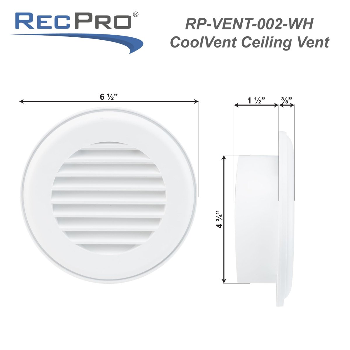 Recpro Rv 7 Ceiling Vent With Rotatable Snap-on Air Diffuser Polar White Low-profile Cover For Even Distribution Adjustable