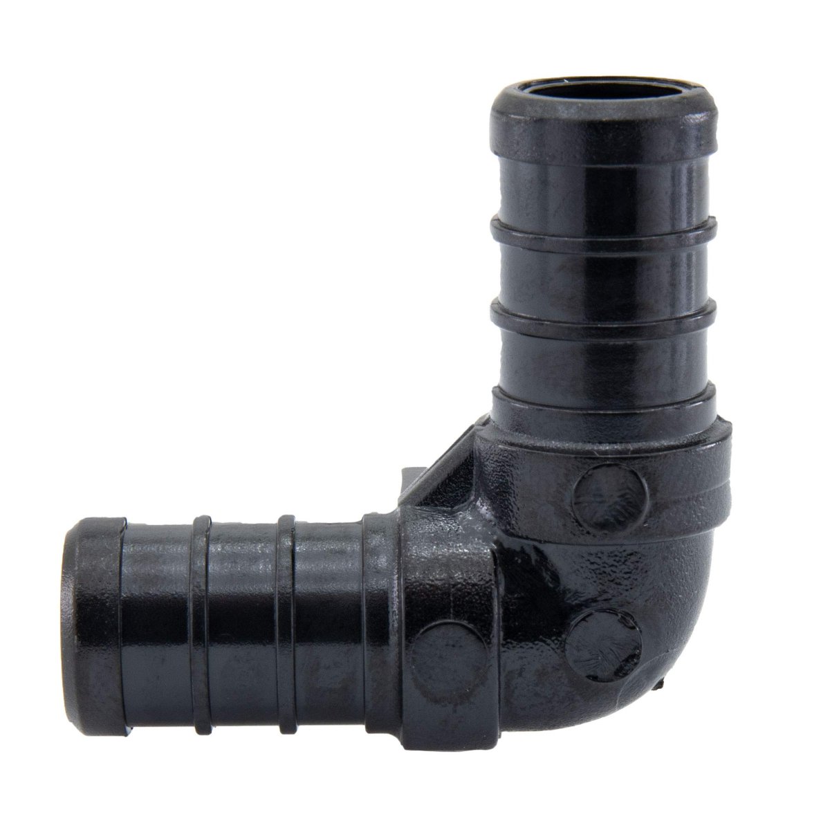 Durable, reliable, and strong, its rust-resistant and non-corrosive, helping to create a watertight connection.. To connect two lengths of PEX or pressurized tubing, you can use these fittings with a crimp ring for the best connection.. This barb elbow is made of solid plastic construction that is NSF certified..Other fine products