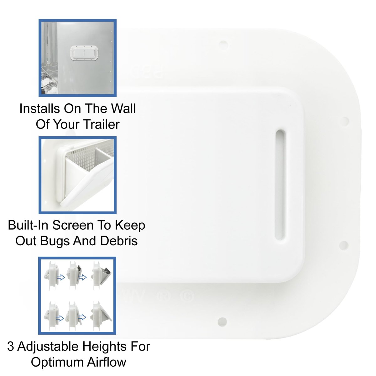 - Recpro Trailer Two Way Plastic Vent Trim Ring Built-in Screen 3 Adjustable Heights 2 Pack White
