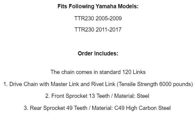- Red Drive Chain And Sprocket Kit For Yamaha Ttr230 2005-2017 Mod-ztf1-6314