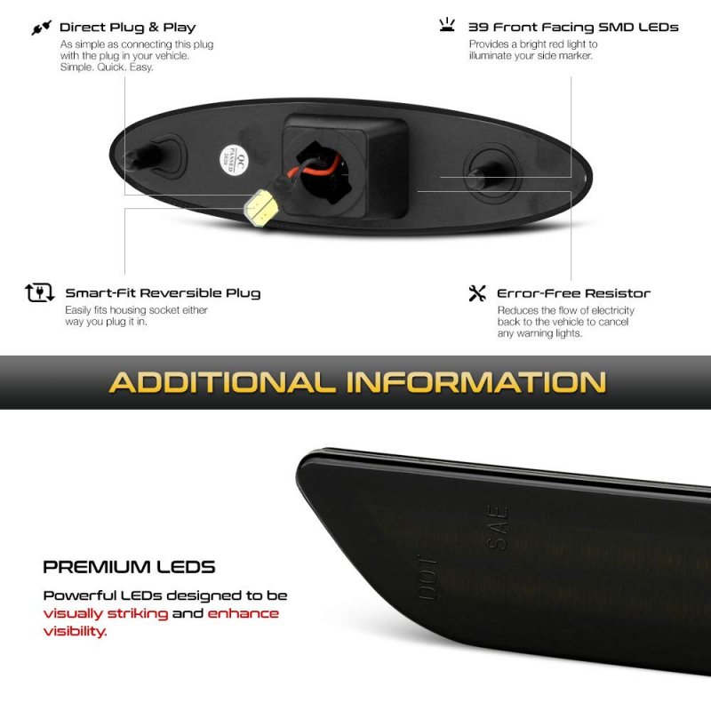 - Red Led Strip Side Marker Light Rear Fender Parking Lamp Replacement For 1997-2004 Chevy C5 Corvette Black Housing Smoked Lens