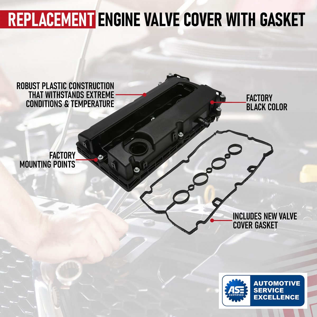 Replacement Valve Cover With Gasket - The valve cover protects the valvetrain of the engine from dirt outside the environment while keeping the oil inside the engine. The valve cover gasket seals the cover to the rest of the engine to keep the oil from escaping the head and pressure inside the engine.. Compatible with Chevy, Pontiac and Saturn with 1.6 and 1.8L Engine - 2009, 2010, 2011 Aveo 1.6L 2011, 2012, 2013, 2014, 2015, 2016 Cruze 1.8L 2012, 2013, 2014, 2015, 2016, 2017, 2018 Sonic 1.8L 2009-2010 Pontiac G3 1.6L 2008-2009 Astra 1.8L 2009 G3 Wave 1.6L 2013 - 2020 Trax 1.8L .. Replaces part# 55558673, 55564395, 56 07 187, 56 07 258, 5607187, 5607258 commonly found on popular 1.6 Aveo, 1.8 Cruze, 1.8 Sonic, 1.6 G3 and 1.8 Astra models including years 08, 09, 10, 11, 12, 13, 14, 15, 16, 17, 18, 19, 20. If you are experiencing a burning smell near the engine, seeing visible oil leaks on the valve cover, engine is always low on oil or running rough and misfiring then you may have to replace your valve cover with gasket.. OEM fit, quality, finish - While this is not a genuine OEM part, it will look, fit and work exactly like the factory part. Leaks on the valve cover are critical and can result in overheating or complete engine failure if neglected and not looked after immediately. The valve cover and gasket can easily be located inside the engine bay and can be accessed by removing the engine cover, the coils and a few bolts and requires no special tools..Other fine products