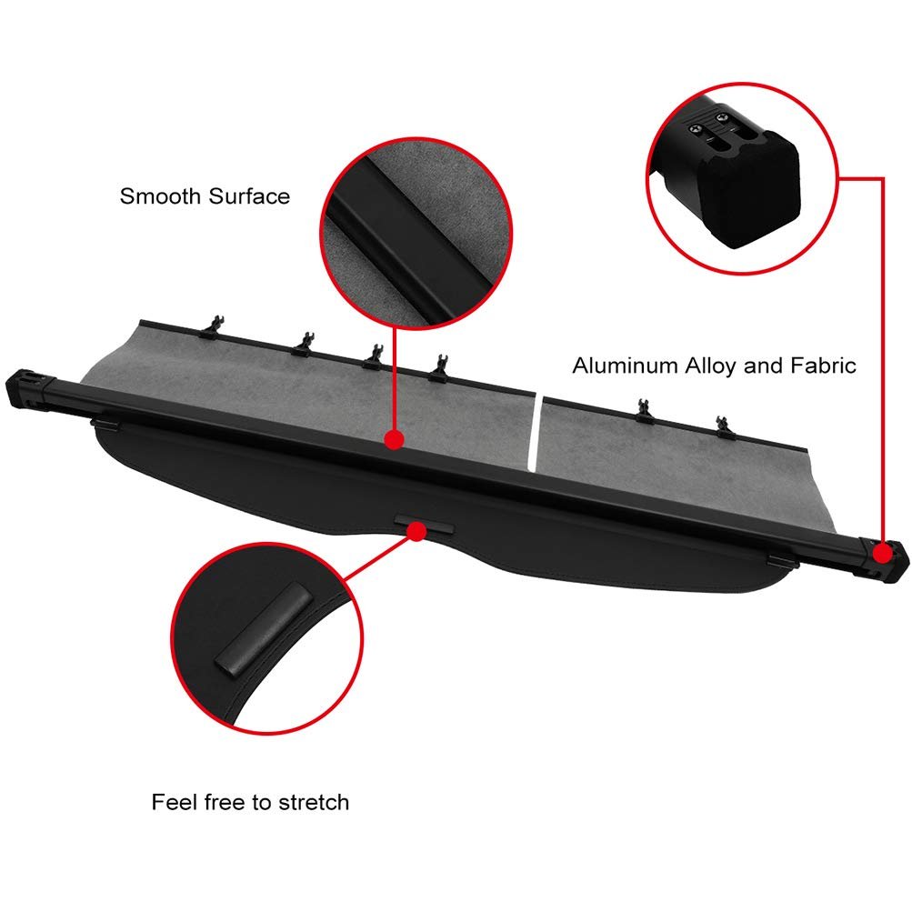 Premium Quality Material: This cargo cover is made of waterproof and durable material, and is structurally reinforced, tear-resistant and offers strong compressive strength. In addition, it is easy to clean, retractable and durable. Fitment: The trunk cargo cover 2014-2019 for Toyota Highlander 2.7L 3.5L. Easy installation: No drilling required, easy installation. Just install the clip bracket to the designated location. Protect Privacy: Light items can be placed on the cargo cover, and valuable items can be placed under the cargo cover to protect your privacy. Traceless Adhesive Backing: When you remove the cargo cover shade, the hook & loop system adhesive backing leaves no residue, maintaining the surface integrity of your car.
