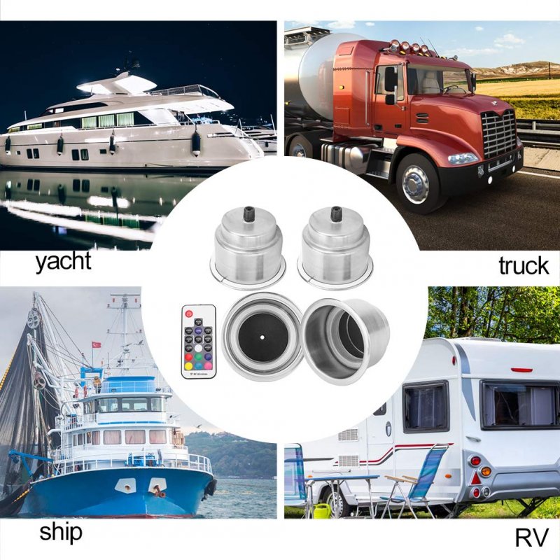 - Rgb Stainless Steel Cup Holder Remote Control 4pcs Dc 12vs Led Drink Holder With For Marine Rv Truck