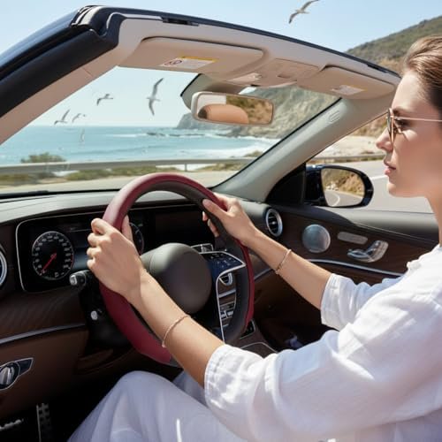 The exquisitely designed 5D grooved grip areas, combined with the ribbed texture, not only deliver a highly sporty appearance but also provide you with an ultimate handling feel.. High-quality perforated Nappa leather, absorbent and anti-slip, comfortable to the touch.. The exquisitely designed 5D grooved grip areas, combined with the ribbed texture, not only deliver a highly sporty appearance but also provide you with an ultimate handling feel.. EASY INSTALLATION: HOTOR car steering wheel cover is easy to install with 3 steps. Just cover the steering wheel with the product from the top, pull it to cover the whole steering wheel, and adjust the product to snugly fit on the steering wheel.. ANTI-SLIP DESIGN: With the anti-slip lining inside, the steering wheel cover stays securely on the steering wheel and won't shift when driving. There won't be any trouble when turning the steering wheel!.