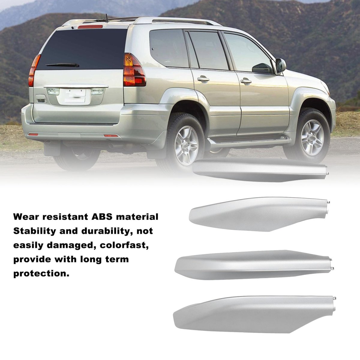 [Premium Quality] machining and rigorous quality control result in beautiful appearance, abs construction, and easy installation for quick vehicle upgrades.. [Wear-resistant] Made of abs materials with excellent erosion resistance, ensuring stability and durability. against damage and discoloration for long-lasting use.. [Simple Installation] Designed for quick and easy installation, saving time and effort. upgrade your vehicle effortlessly with these roof rack end .. [Easy Replacement] Ensure suitability for gx470 2003-2009 before purchase. check part numbers 63492-60040, 63491-60060, 63494-60050, 63493-60060 for oe compatibility.. [Sturdy Design] Solid structure with accurate installation position ensures a secure fit. enhance the look and functionality of your roof rack with these end ..Other fine products