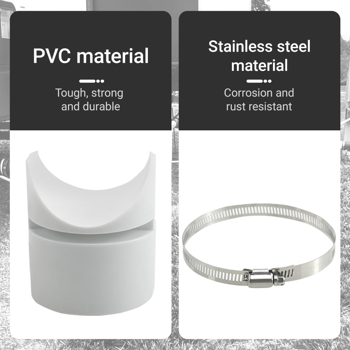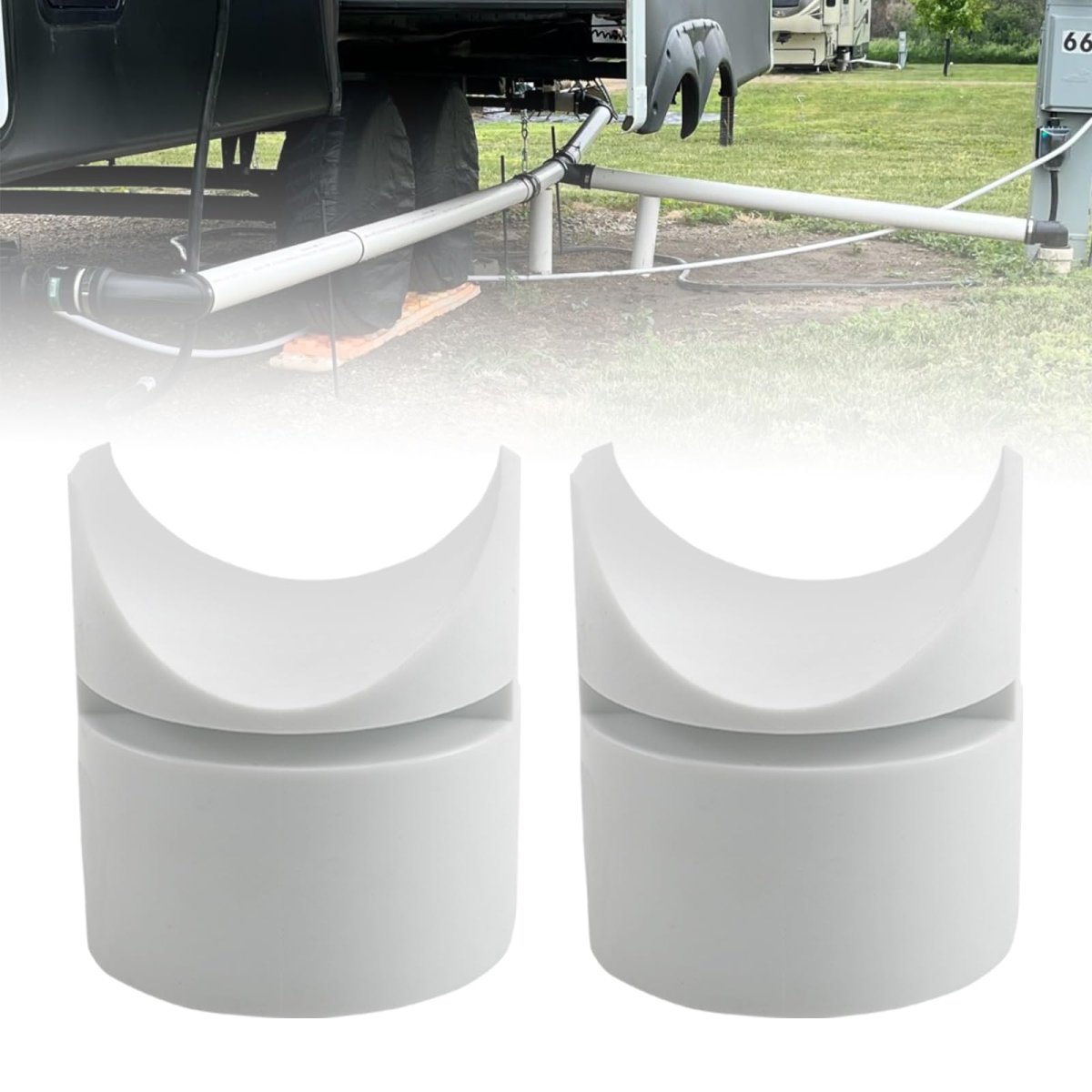 [Customizable Slope] Designed to accommodate both 3" and 2" PVC pipes (not included), these pipe stands allow for adjustable positioning to achieve the perfect slope for your system. This customization ensures optimal drainage performance, making waste disposal more efficient and hassle-free. [Enhanced Drainage Efficiency] Tailored for use with the RV and Camper Sewer Waste Plumbing Connection System Kit, the pipe stands are engineered to maintain the proper slope for gravity drainage. This design promotes efficient waste removal, preventing clogging and ensuring smooth disposal, especially during extended trips. [Durability and Resilience] Constructed from durable elastomeric polyvinyl chloride (PVC), these pipe stands offer long-lasting strength and flexibility. The robust material is designed to withstand harsh conditions, providing reliable support for your RV's plumbing system. [Rust-Resistant Components] Featuring corrosion-resistant and rustproof stainless steel clamps, these pipe stands are built to endure the elements. The high-quality materials ensure that the stands maintain their integrity over time, even in wet or humid conditions, giving you peace of mind during every adventure.Other fine products