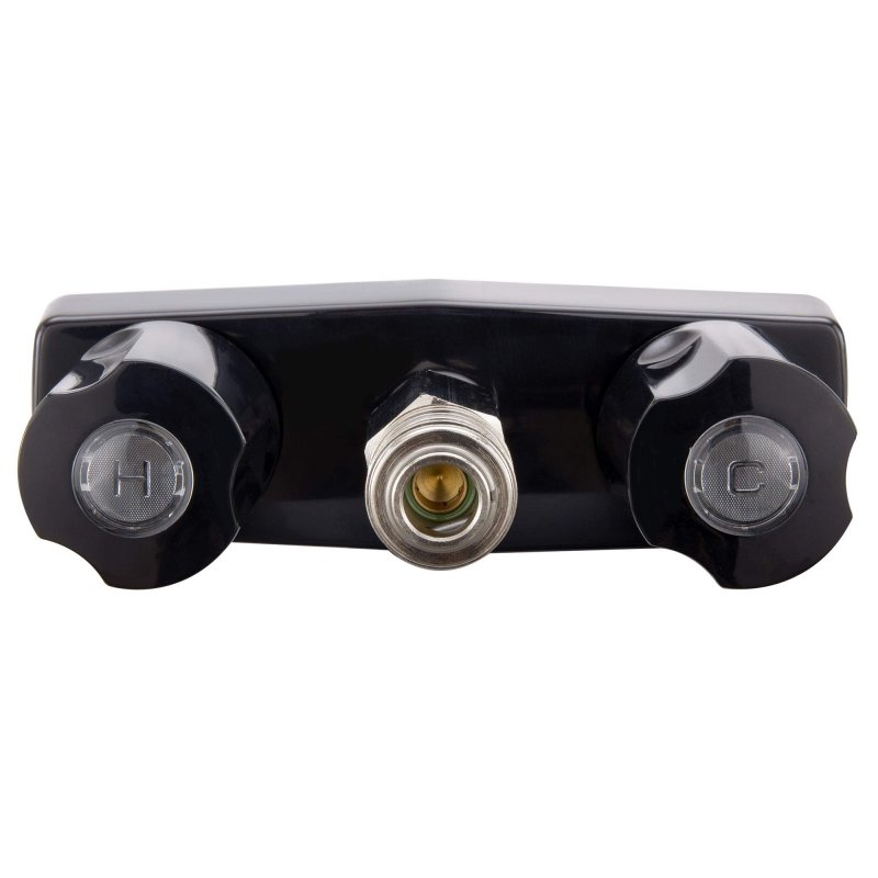 This faucet measures 6 1/4" wide by 2 1/8" high by 5 1/4" long and is great for both outdoor kitchens and for other RV applications, such as rinsing off gear or filling up buckets for washing dishes.. The quick connect valve is made of solid metal, its sturdy and meant to last. You can connect your standard-sized garden hose to the faucet as well with the quick-connect valve at the top. Made of solid brass, the valve is a great transition piece for garden hoses to this application.. The hook-ups have threads and there are two 2 shanks to help connect it to the water system of your RV. Able to hook up to hot and cold water, this faucet is perfect for those that wish to use their outdoor water for temperature-specific purposes, such as rinsing off feet.. Even with the durability of this faucet, it should be noted to make sure you follow the water draining instructions to make sure the faucet is kept safe during the colder seasons. Any freezing water in the faucet could mean damage to the faucet, which could cause cracks and leaks..Other fine products