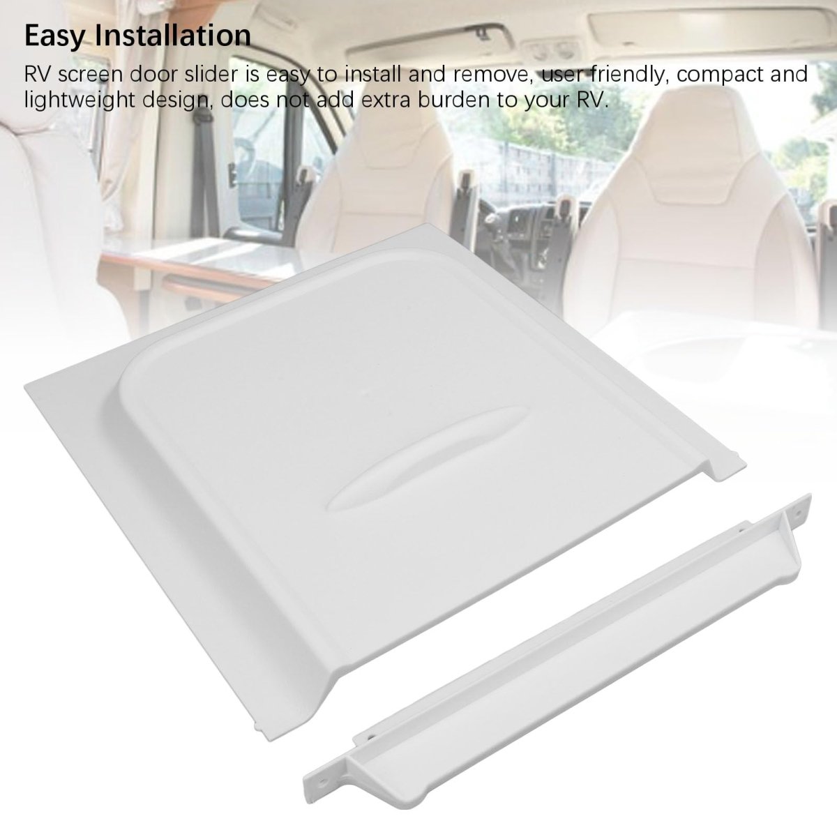[Effective Debris Prevention] The rv screen door slider effectively blocks debris from entering, ensuring a clean interior with great ventilation.. [Easy Installation and Removal] User-friendly design, compact, and lightweight, seamlessly integrating into your rv without adding extra weight.. [Fashionable Design] The simple yet stylish white panel design effortlessly complements various caravan interior styles, enhancing aesthetics.. [Versatile Usage] Great for caravan trailers, motorhomes, and cargo trailers, this door slider is the ideal upgrade for your on-the-road living experience.. [Premium Pp Material] Made of pp material, this sturdy door slider is wear-resistant, weatherproof, and even in tough conditions..Other fine products