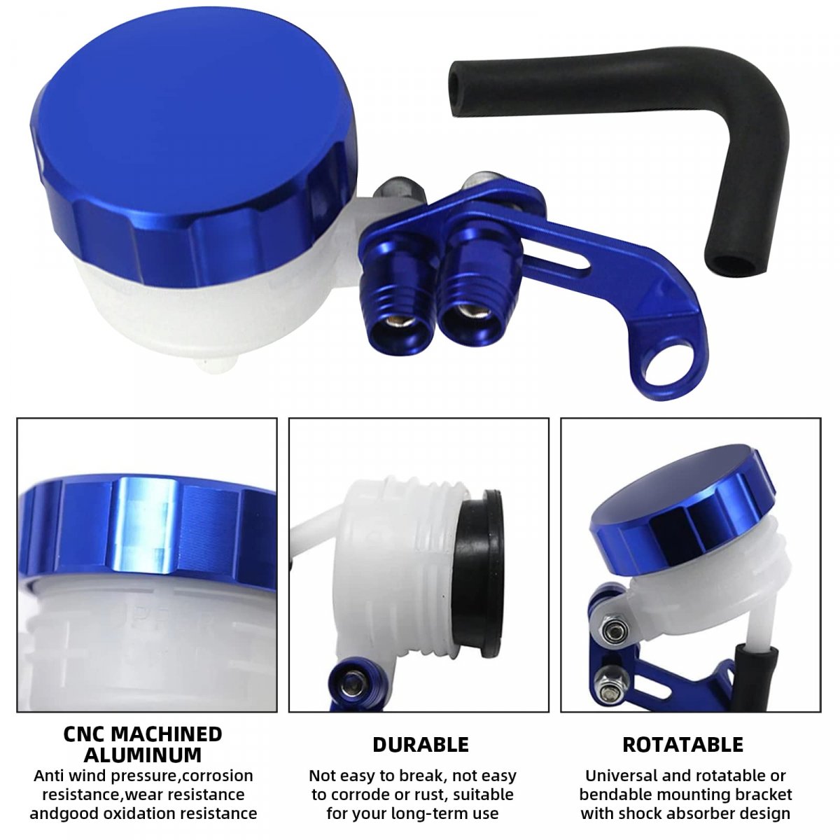 Material: Brake Fluid Reservoir made of high qulity aluminum, with impact resistance, heat resistance, low temperature resistance, durable for long time use.. Suitable Models: Compatible with 125-600cc Motorcycle off-road vehicle scooter kart gy6-125 GY6-150 NIAJA 250 CB400 CBF500 ER-6N.. Easy to Install: Easy and convenient to install, direct bolt-on or connecting to the included bracket available.. High hydraulic with high brake, anti wind pressure, wear resistance, with rubber ring seals inside to prevent leakage..Other fine products