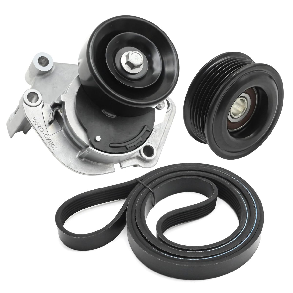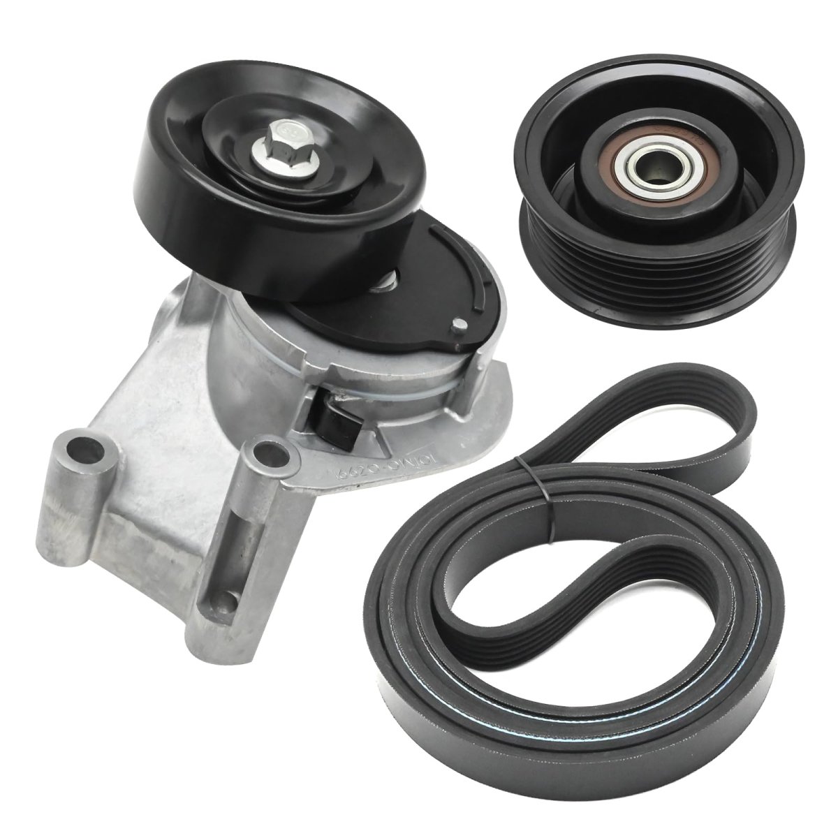 Replaces Part Numbers: 36026, 38488, 49452, 89255, 999421, 999421A, 6PK2240, K060882, 6K882, 166200W100 166200W101, 16620-0W100, 16620-0W101, 11927EA000, 11020001, 1660450030, 166040F010, 19107108, 11030053; Component kit replaces part number: 90K-38488, 90K38488. Fitment: Replacement for Toyota Tundra 4.7L V8 GAS 2000 2001 2002 2003 2004 2005 2006; Replacement for Toyota Land Cruiser 4.7L V8 GAS 1998 1999 2000 2001 2002 2003 2004 2005 2006 2007; Replacement for Toyota Sequoia 4.7L V8 GAS 2001 2002 2003 2004 2005 2006 2007 2008. Function: Ensures proper tension and alignment of the serpentine belt, maintaining optimal performance of the engine accessories. Prevents slipping and premature wear of the belt, contributing to the overall efficiency and longevity of the engine system. Perfect Solution: Offers a comprehensive solution for replacing worn-out or damaged serpentine belt tensioner components. What You Will Get: 1 * Tensioners, 1 * Idler pulleys, 1 * Belt.Other fine products