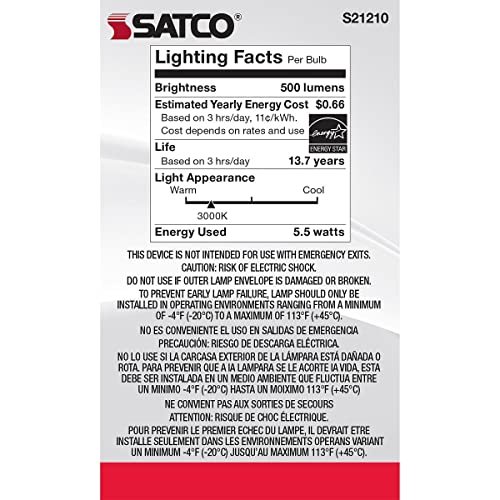 - Satco 5 5-watt Led E12 Light Bulb 3000k 15000 Hour Rating Dimmable