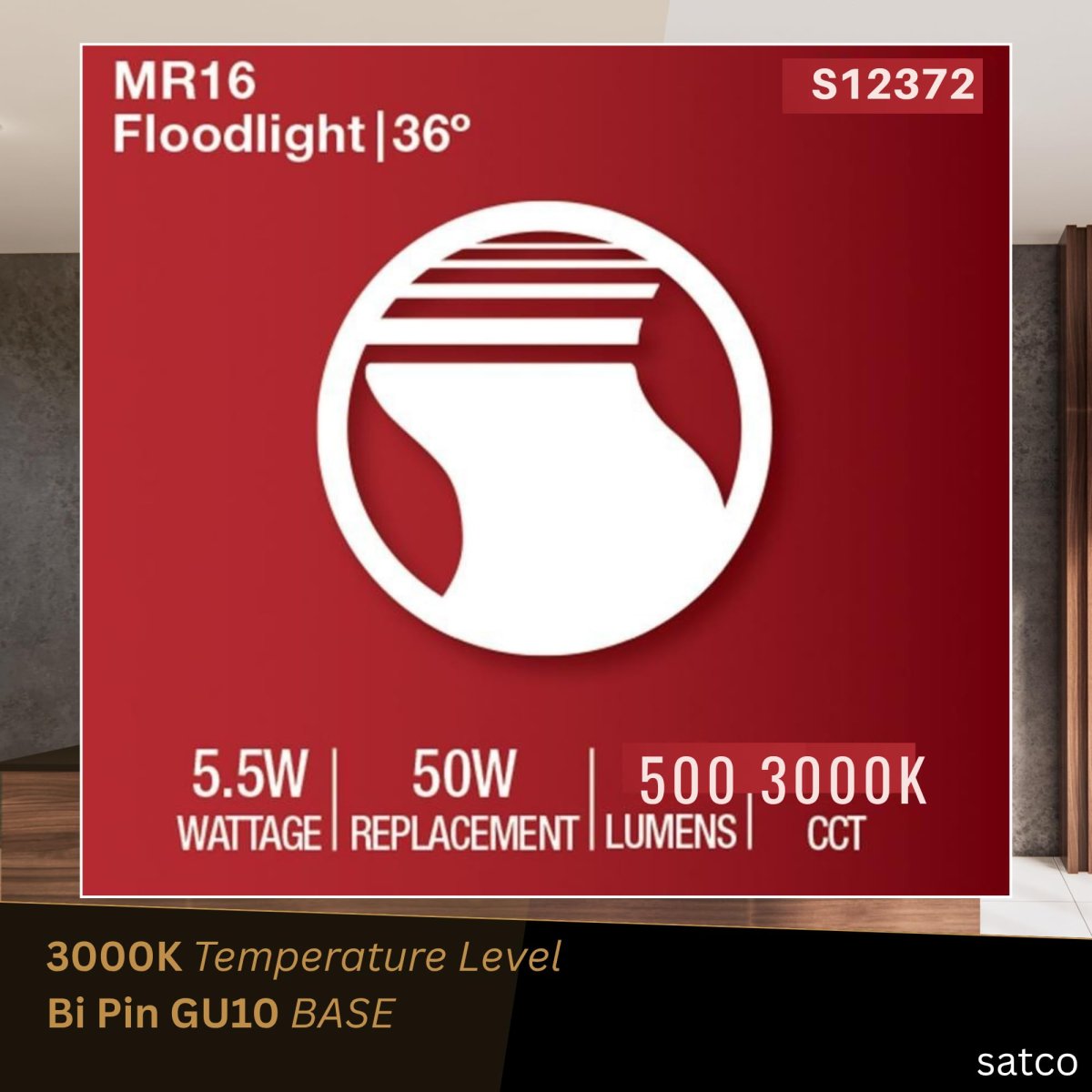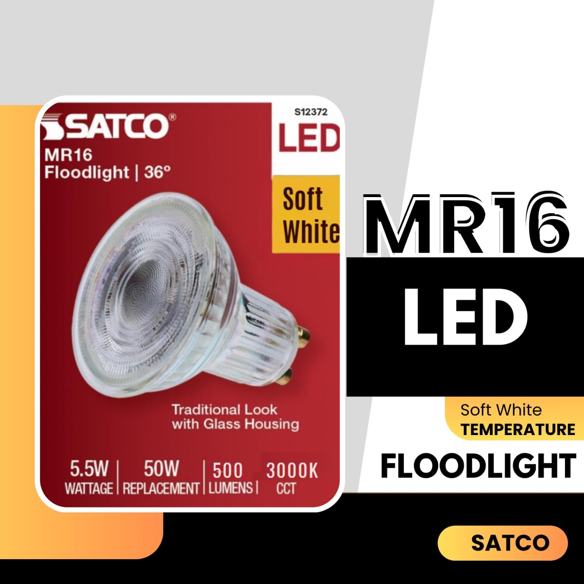 • Satco Led Mr16 Floodlight 5 5w 50w Equivalent 3000k Soft White 90 Cri 36a Beam Gu10 Twist-lock Base 120v Dimmable Clear Finish